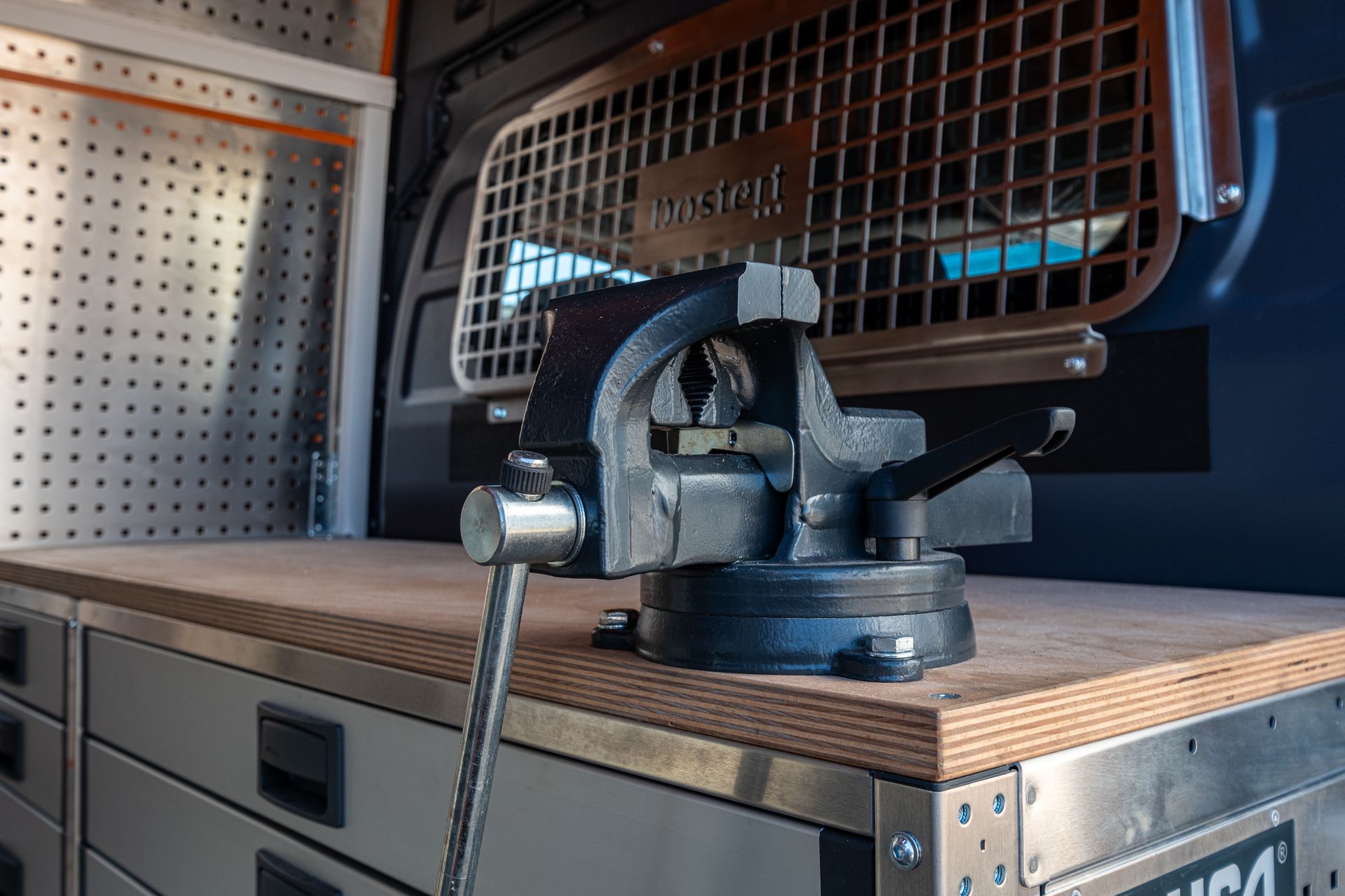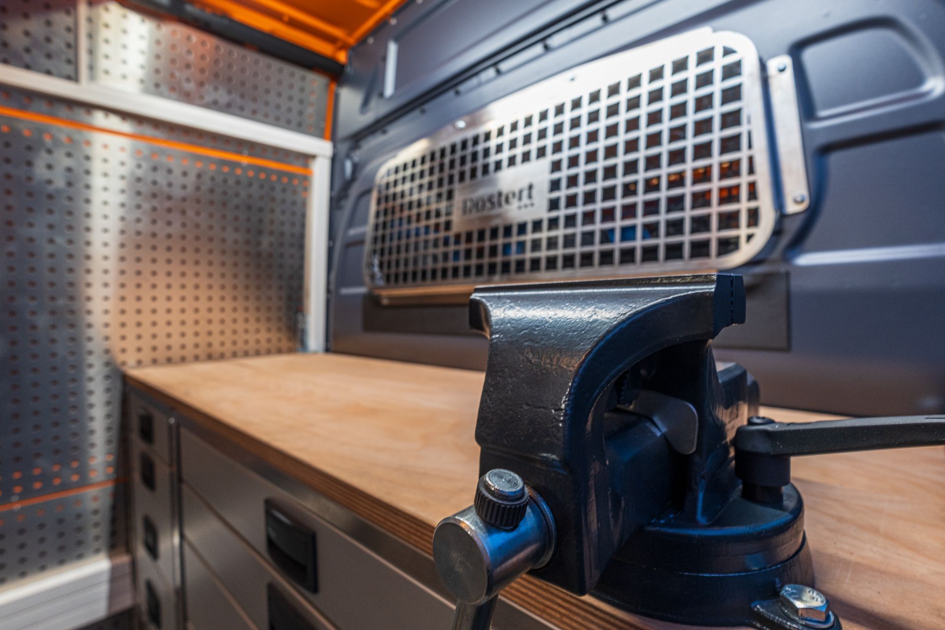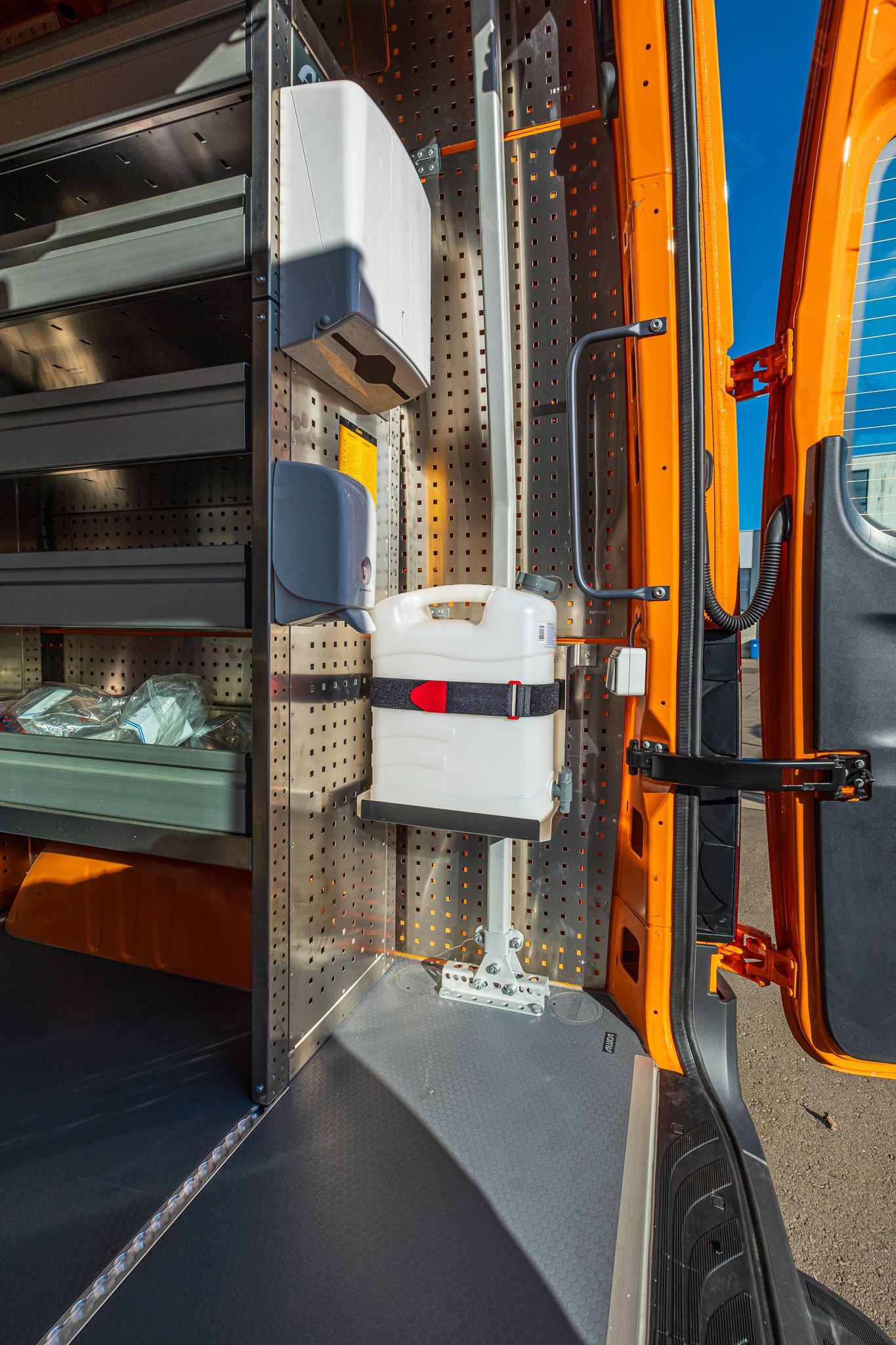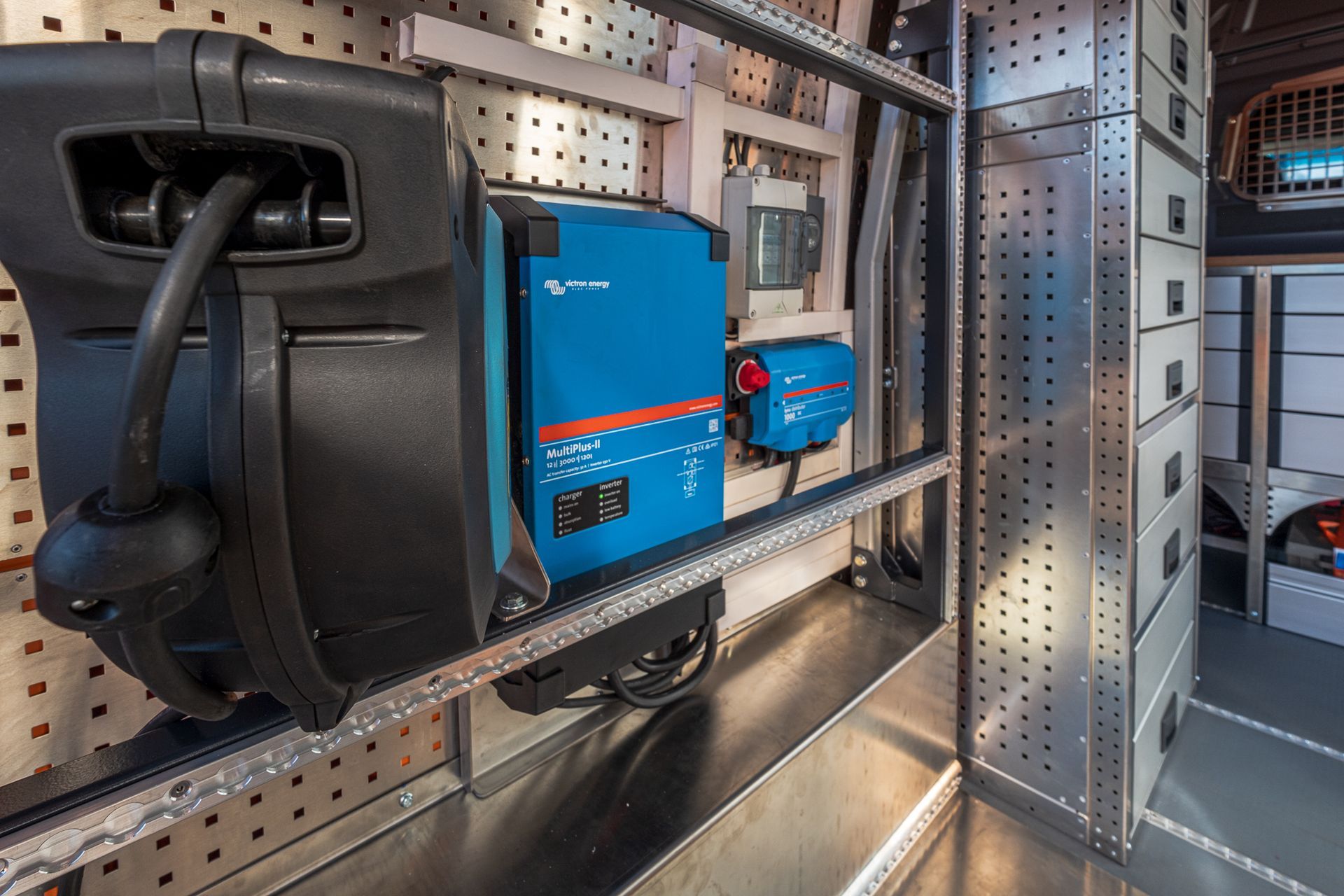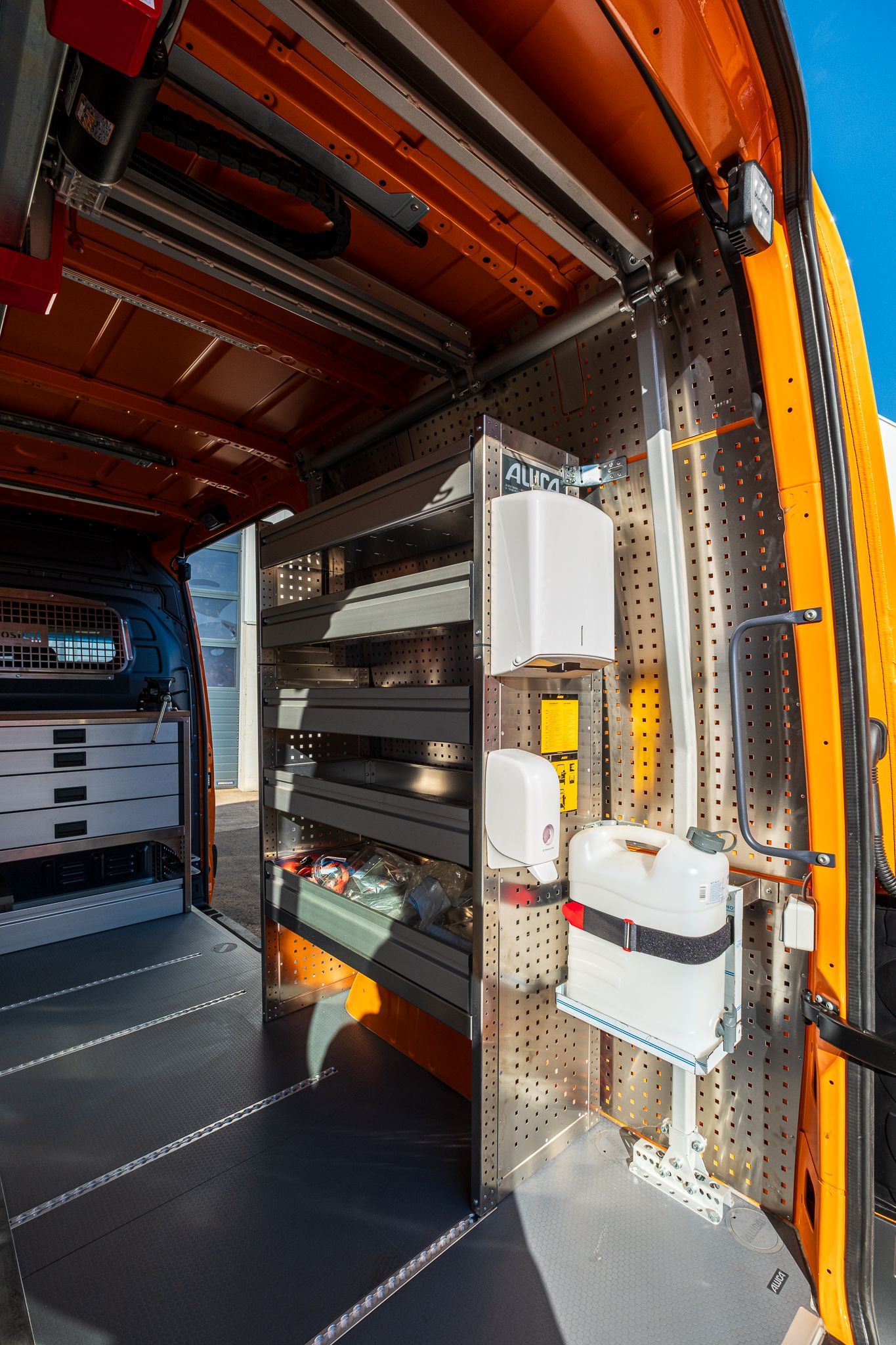 mit einem Haulerman Kran zum heben von Gewichten bis 250kg, inklusive Beleuchtung im Fahrzeug inneren sowie Umfeld Beleuchtung, montiert in einem Mercedes-Benz Sprinter