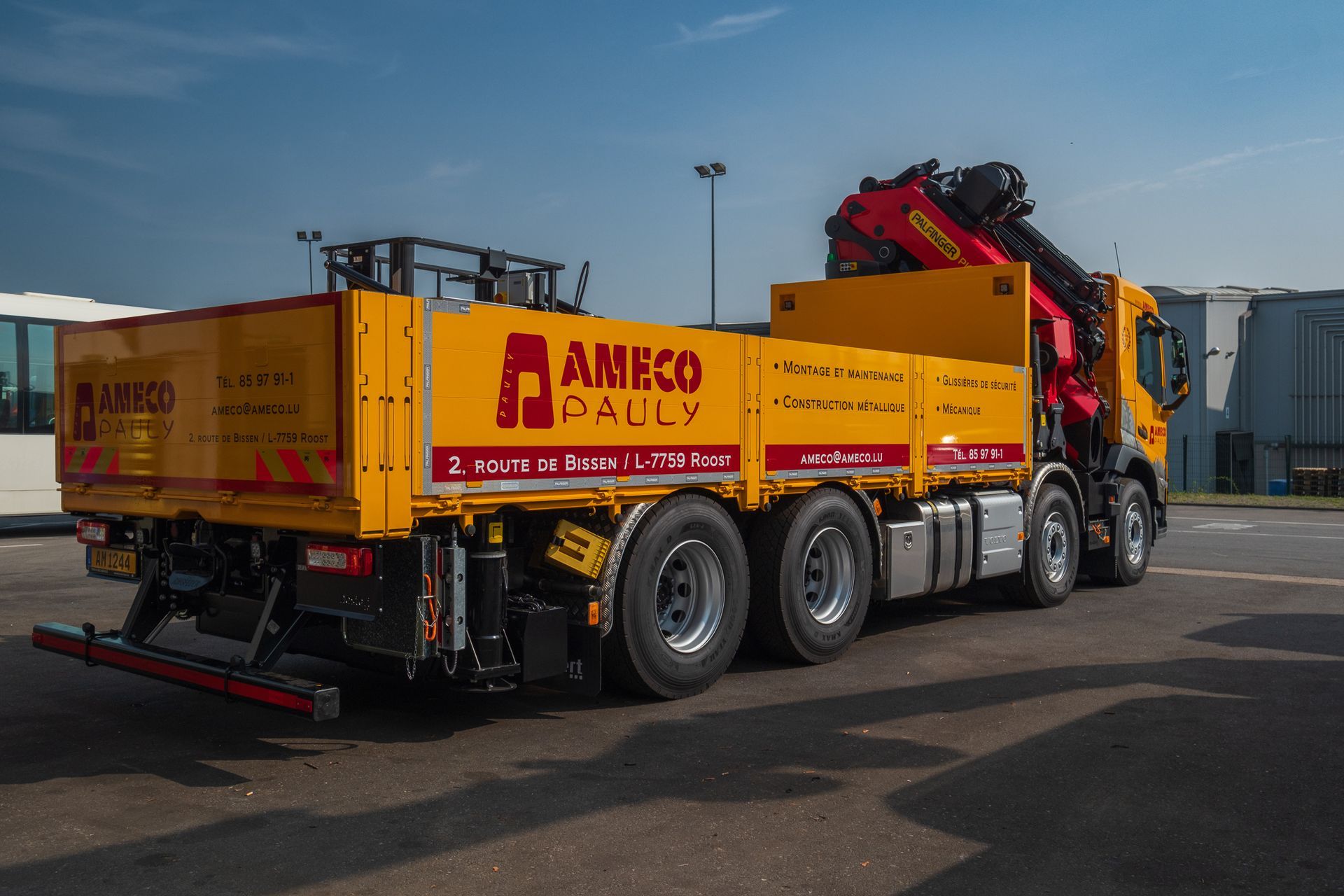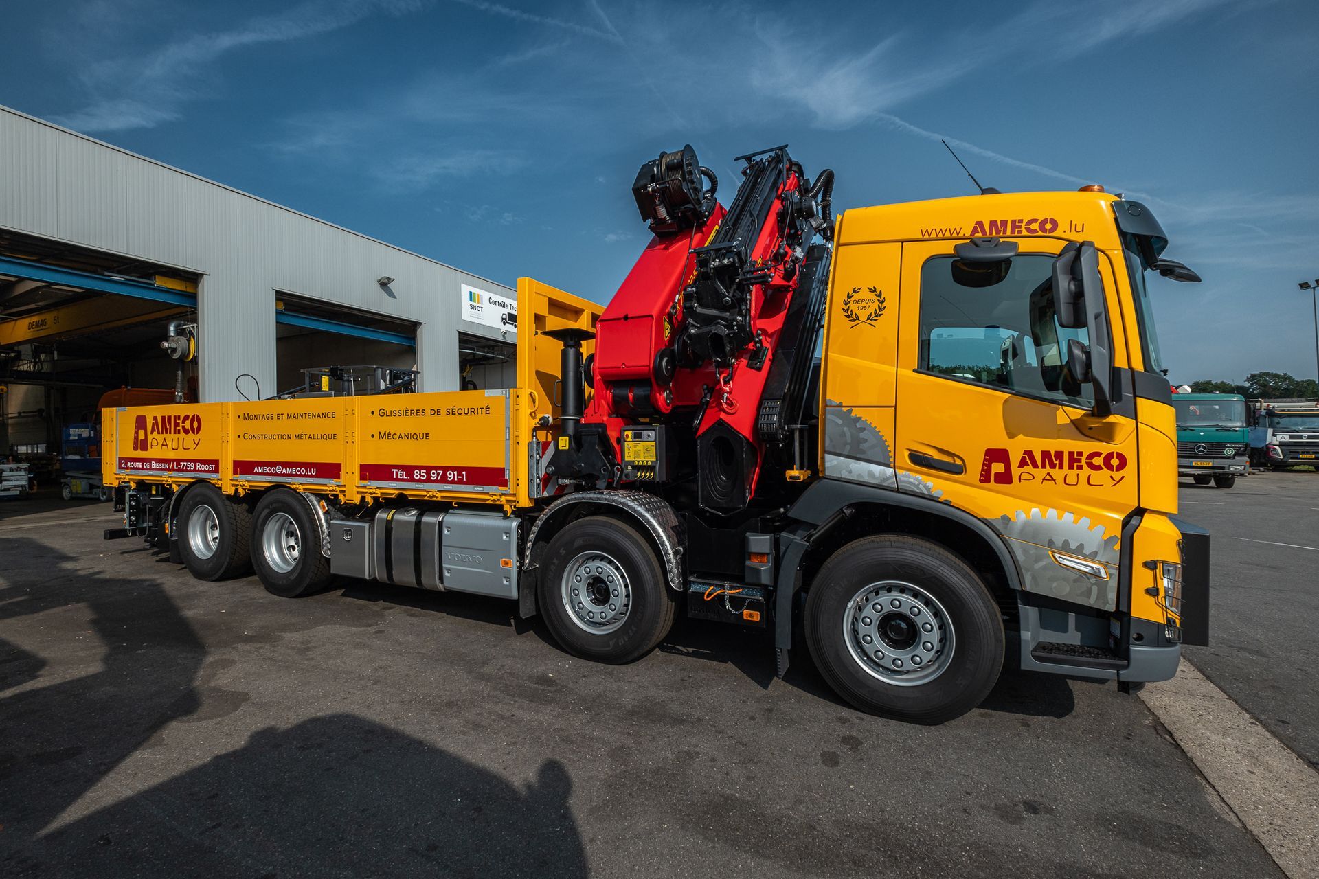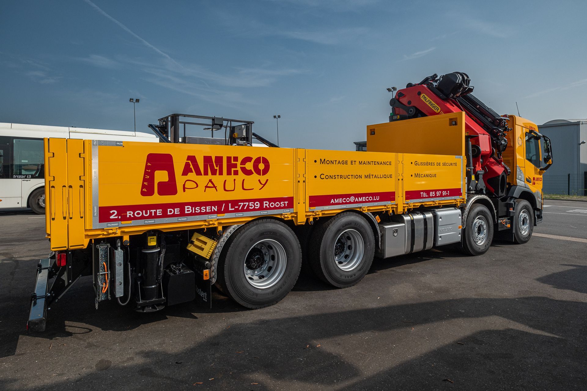 Montiert mit einem Pritsche auf einem 4-achs Volvo FM Fahrgestelll