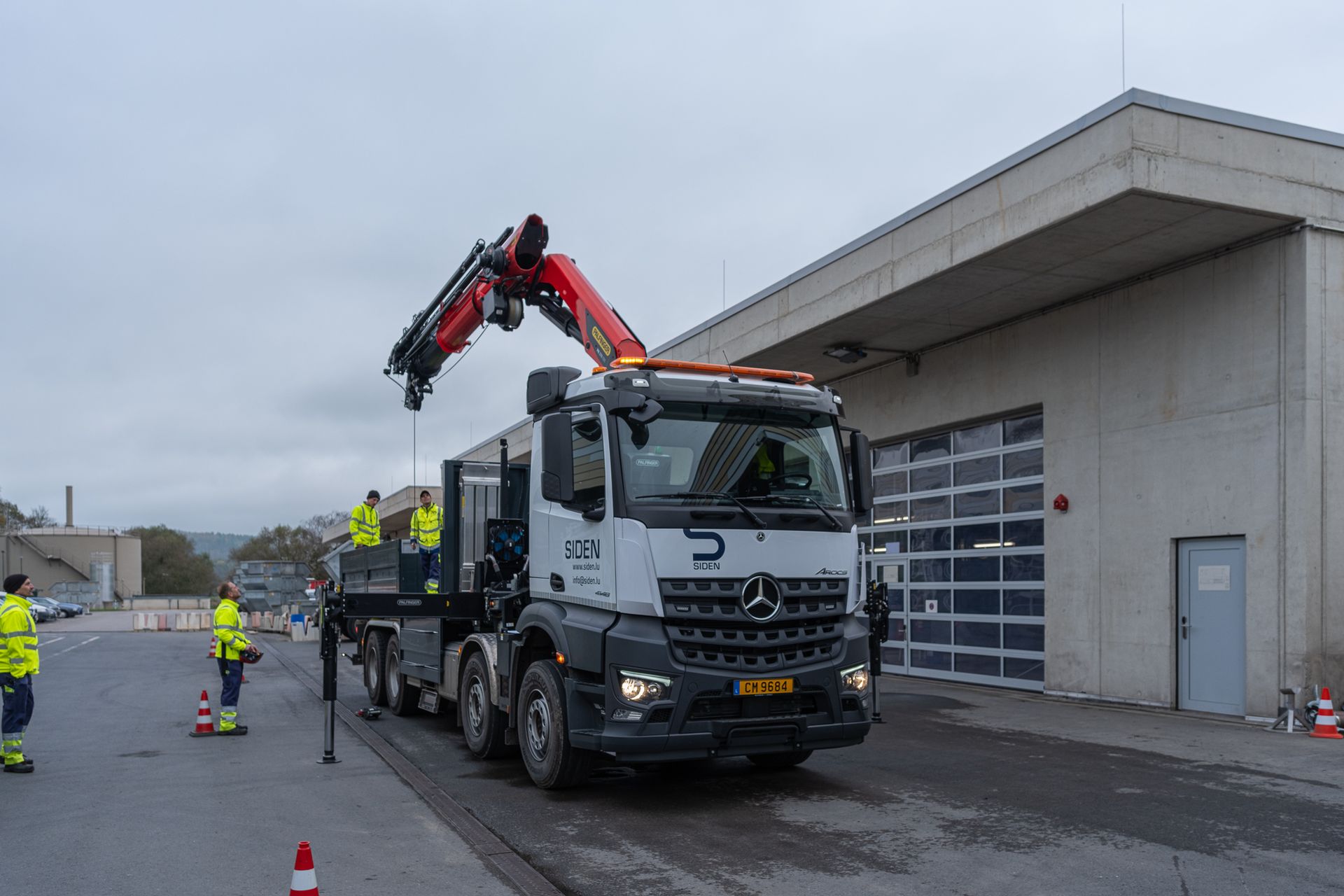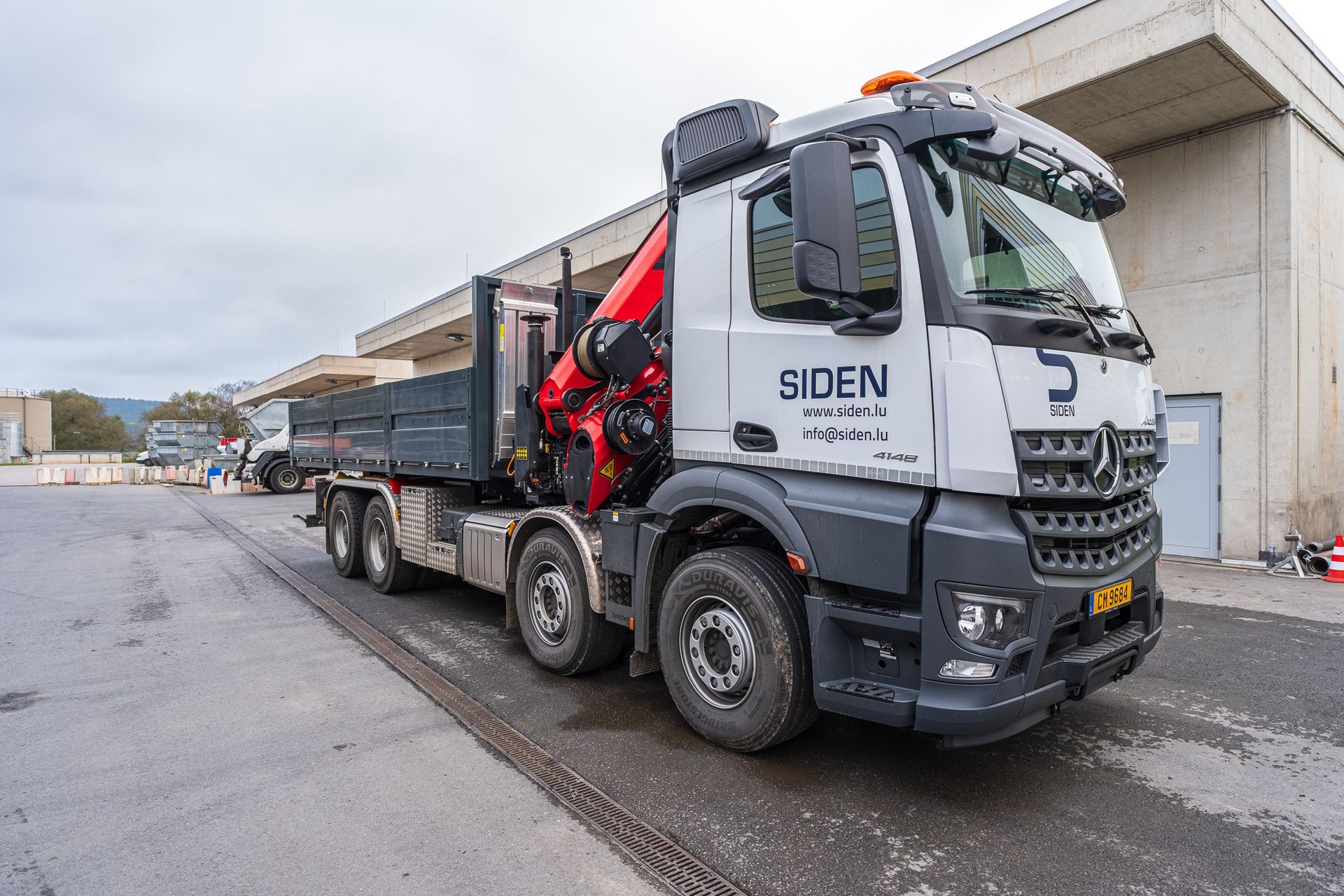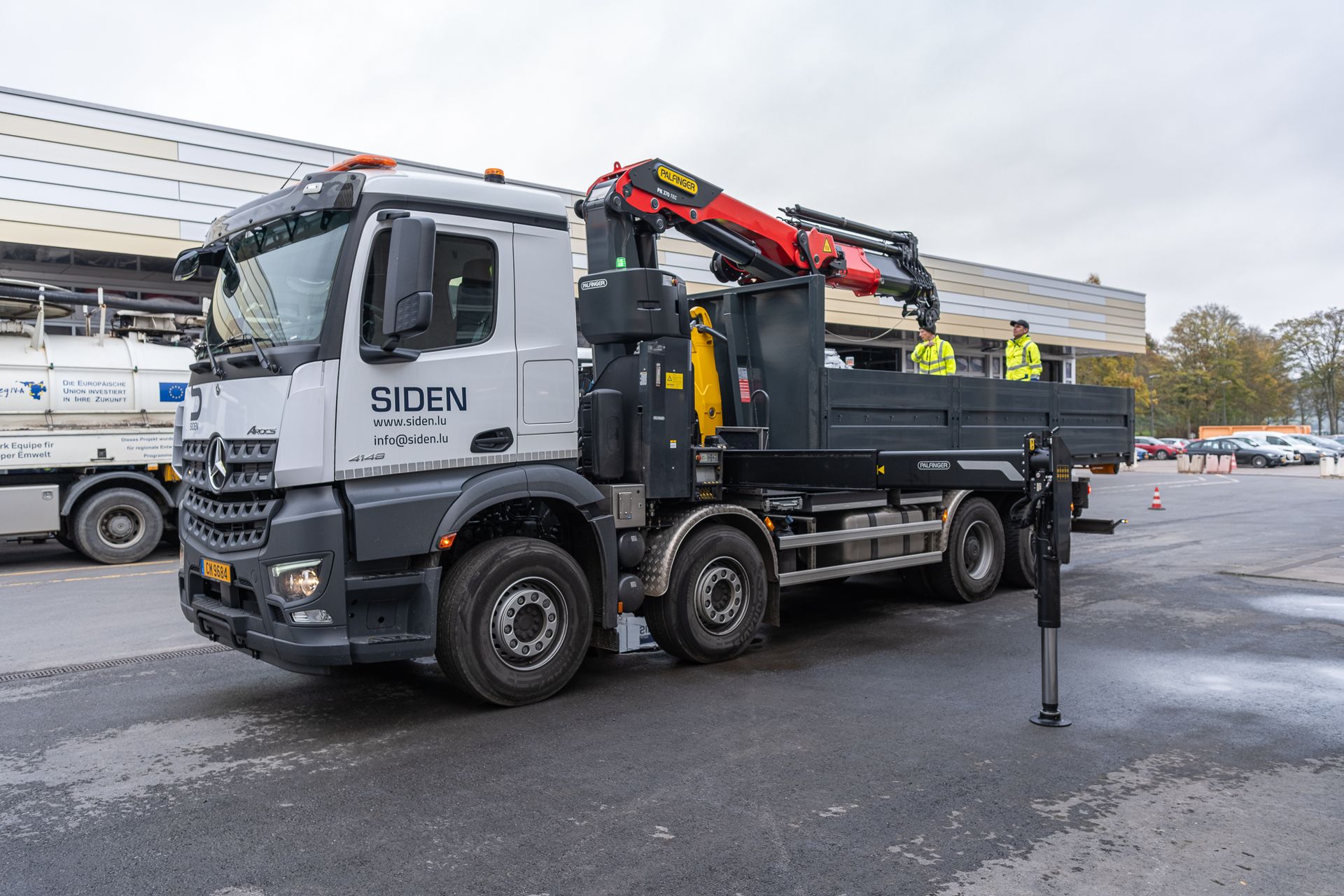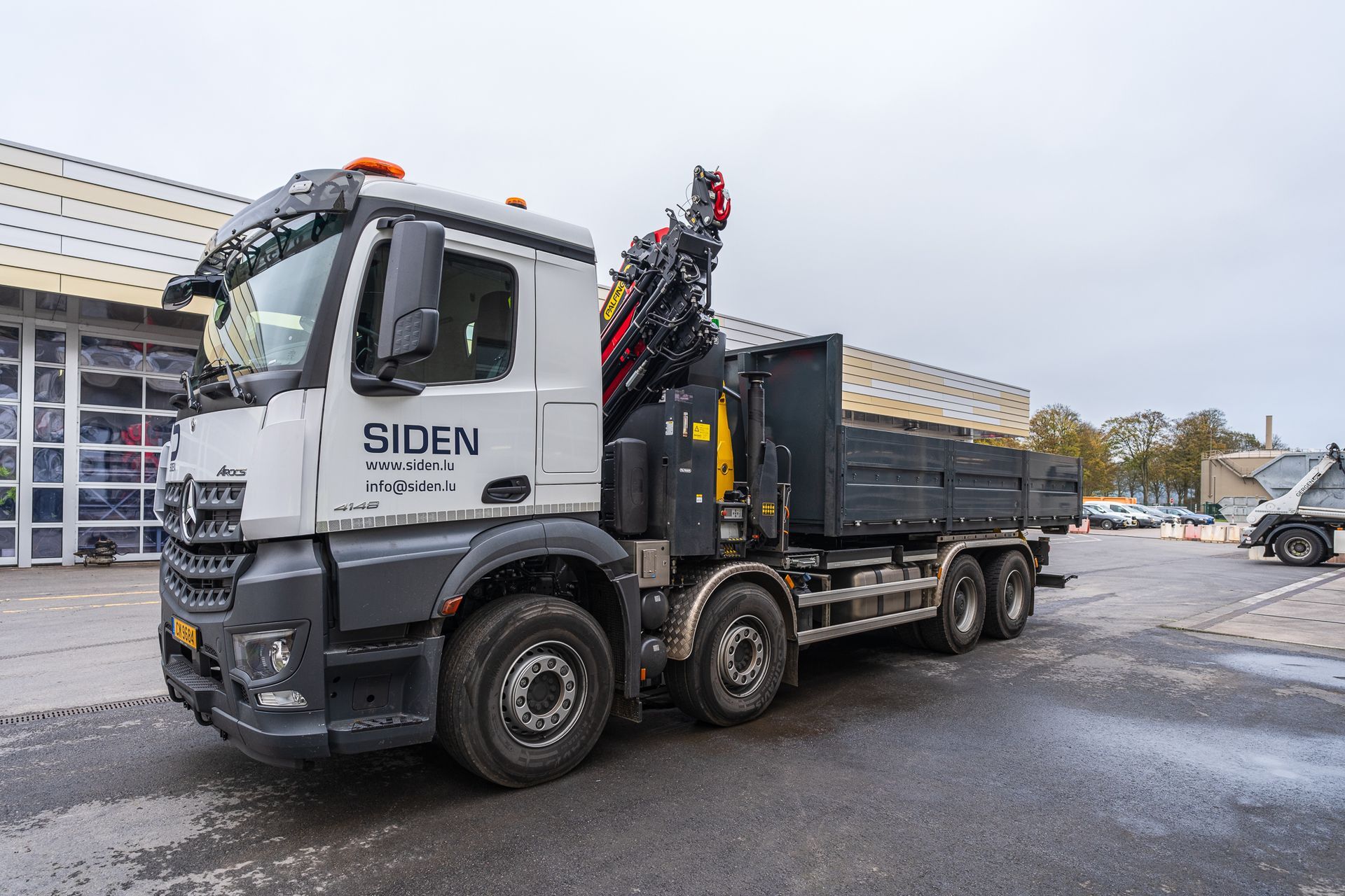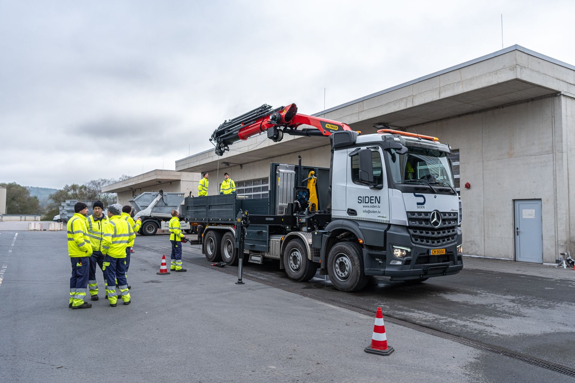 montiert mit einem Abroller PHT 22 SCAN SLD5 auf einem 4-achs Mercedes-Benz Arocs Fahrgestelll