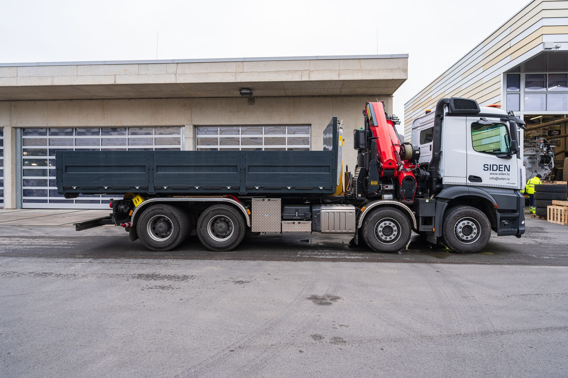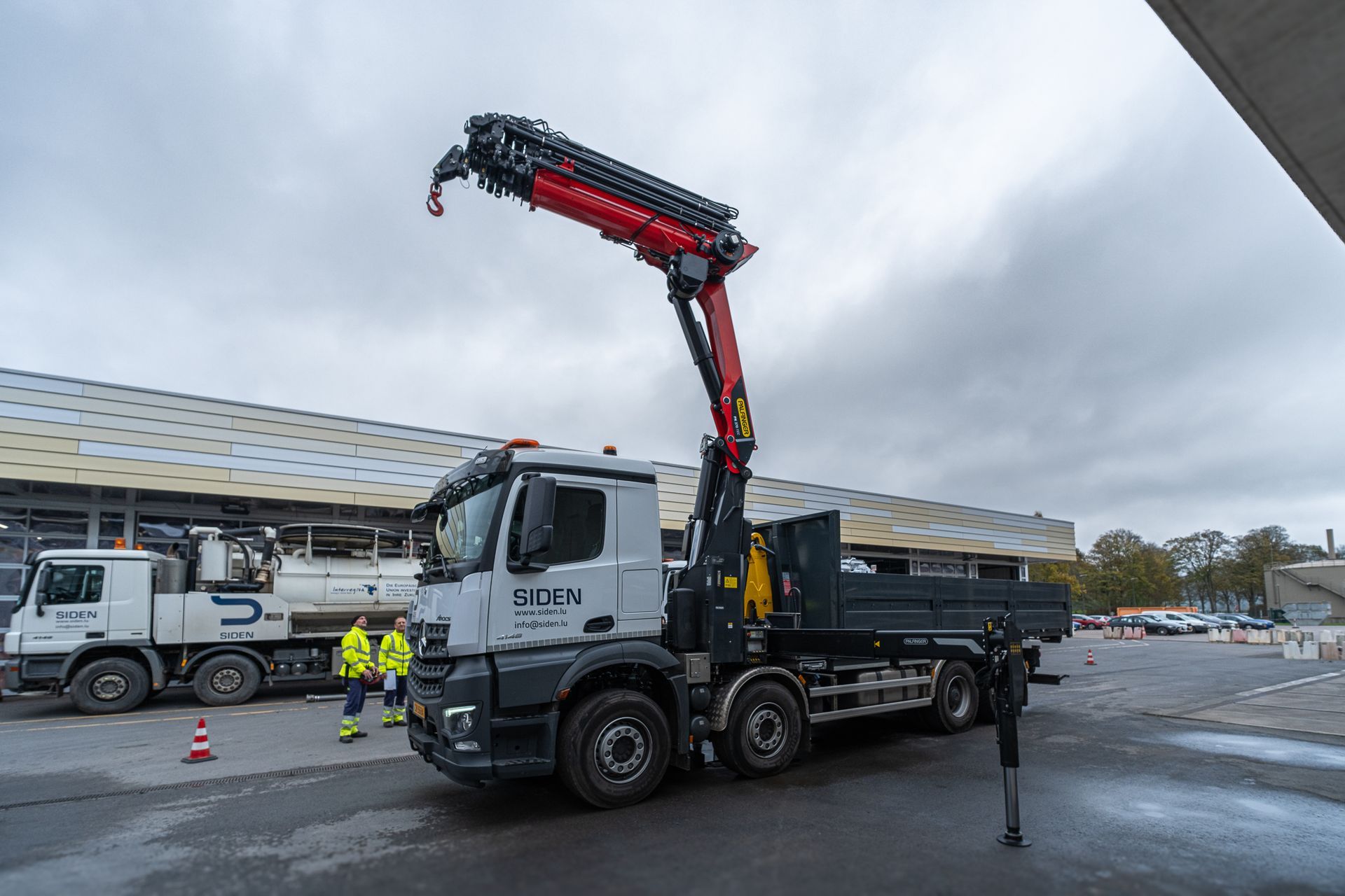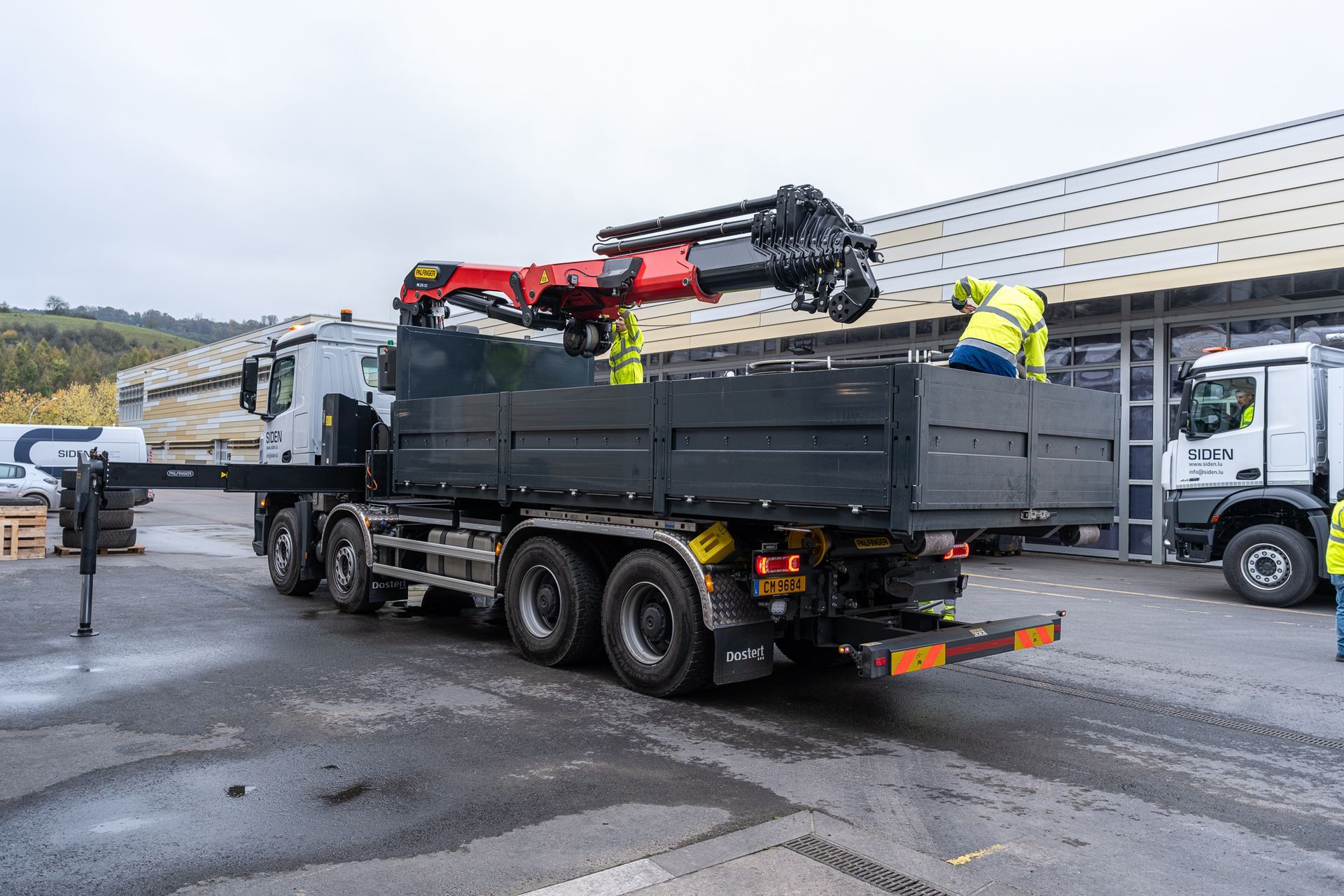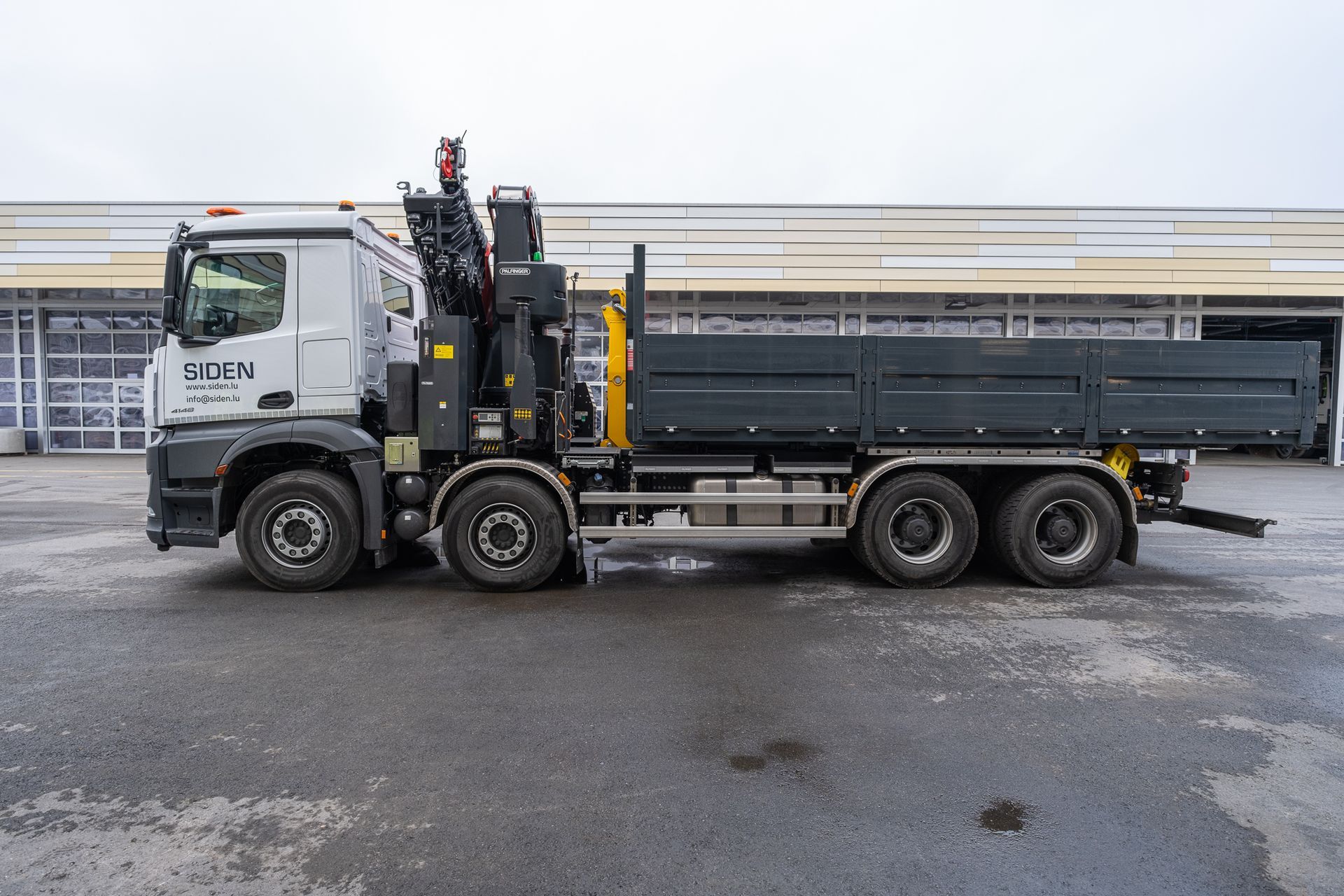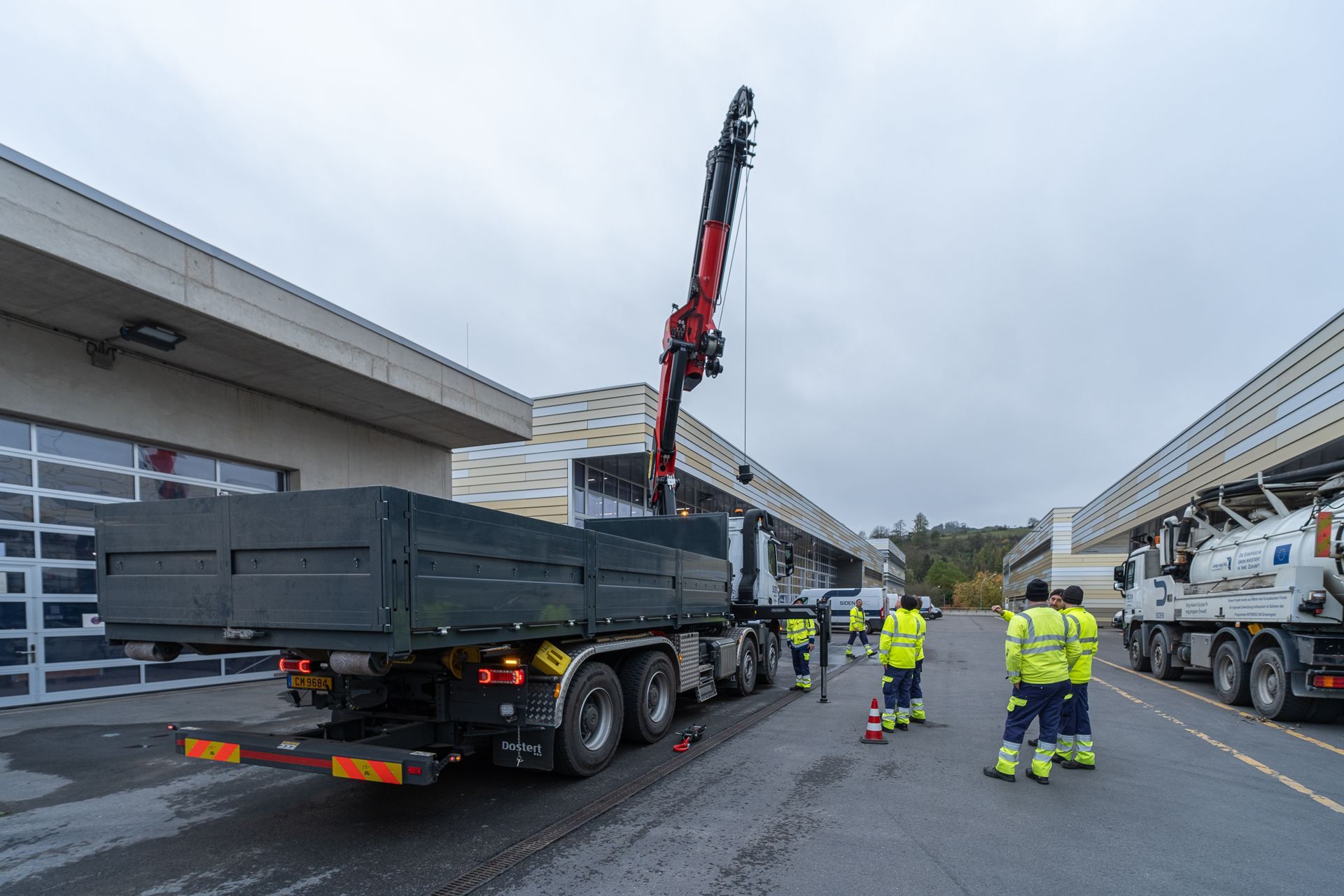 montiert mit einem Abroller PHT 22 SCAN SLD5 auf einem 4-achs Mercedes-Benz Arocs Fahrgestelll
