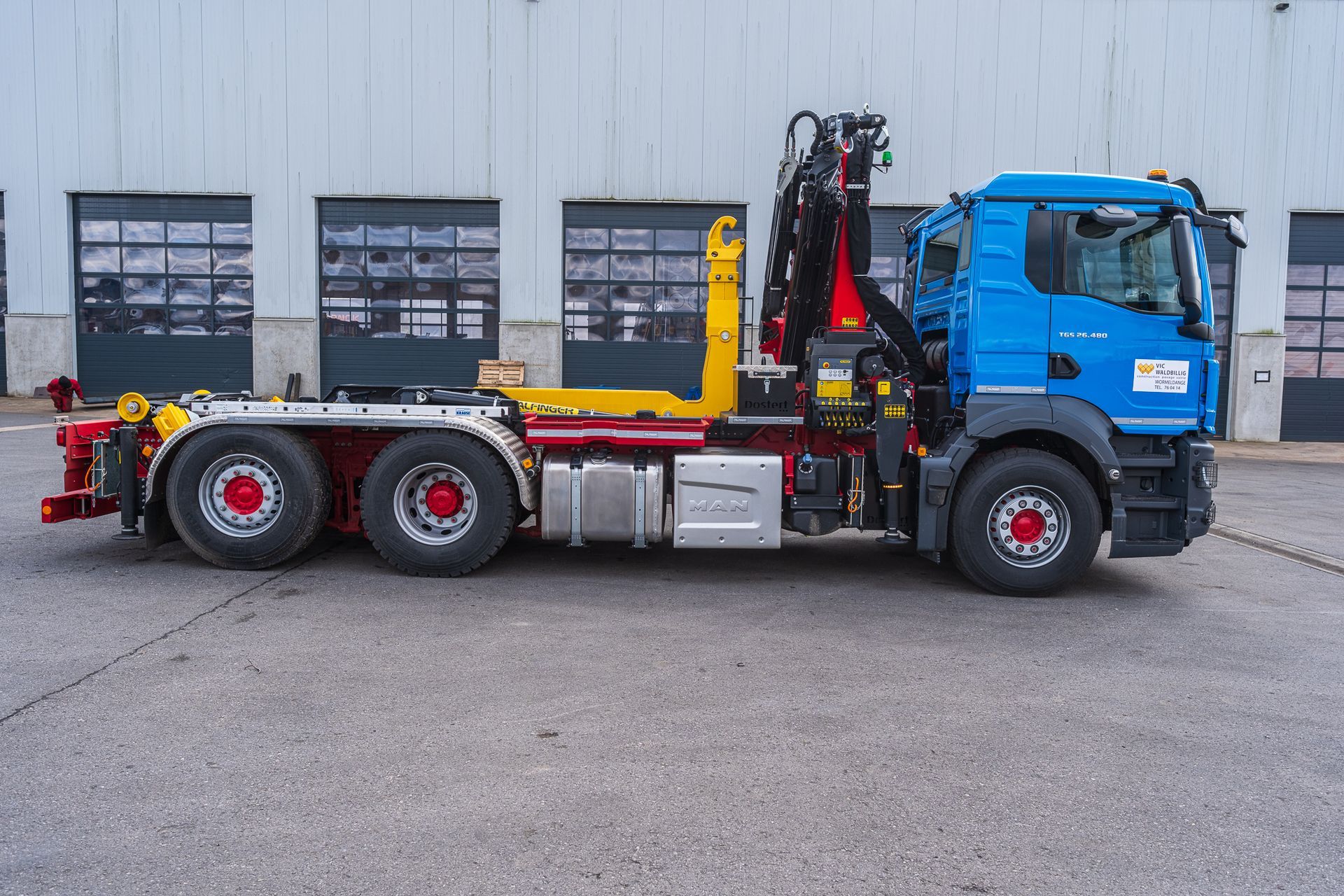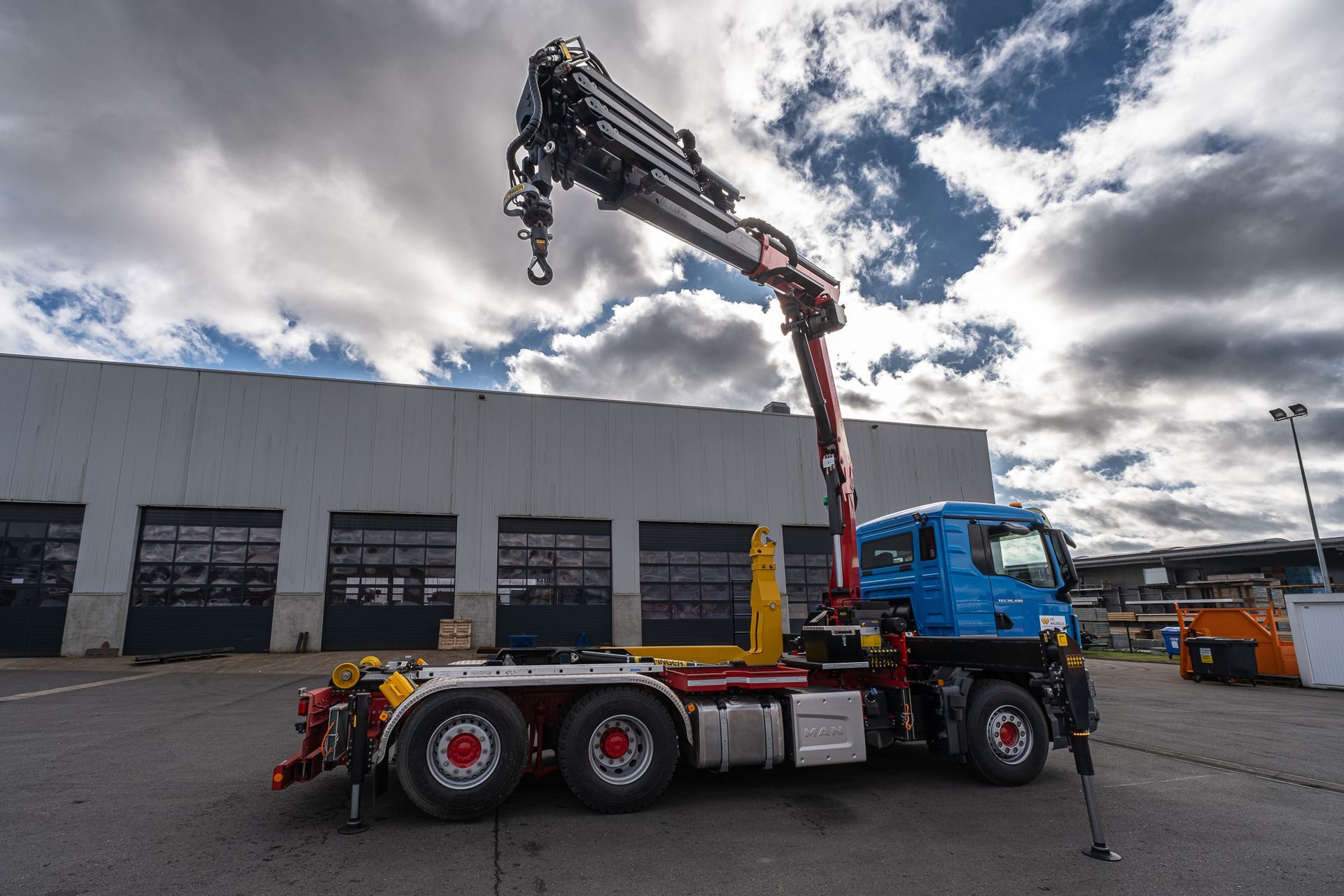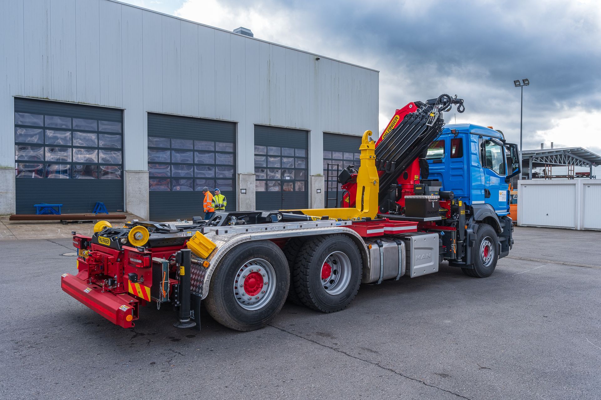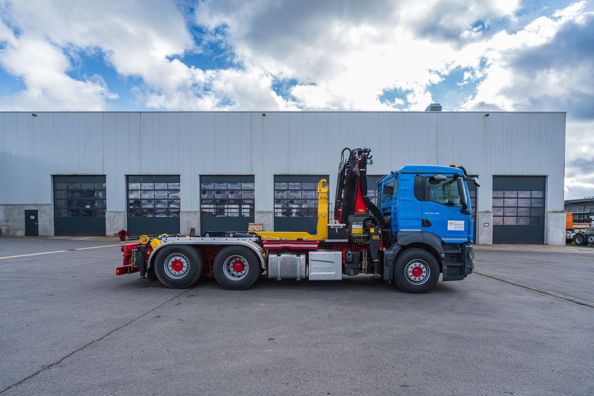 montiert mit einem Abroller P14A auf einem 3-achs MAN TGS Fahrgestelll