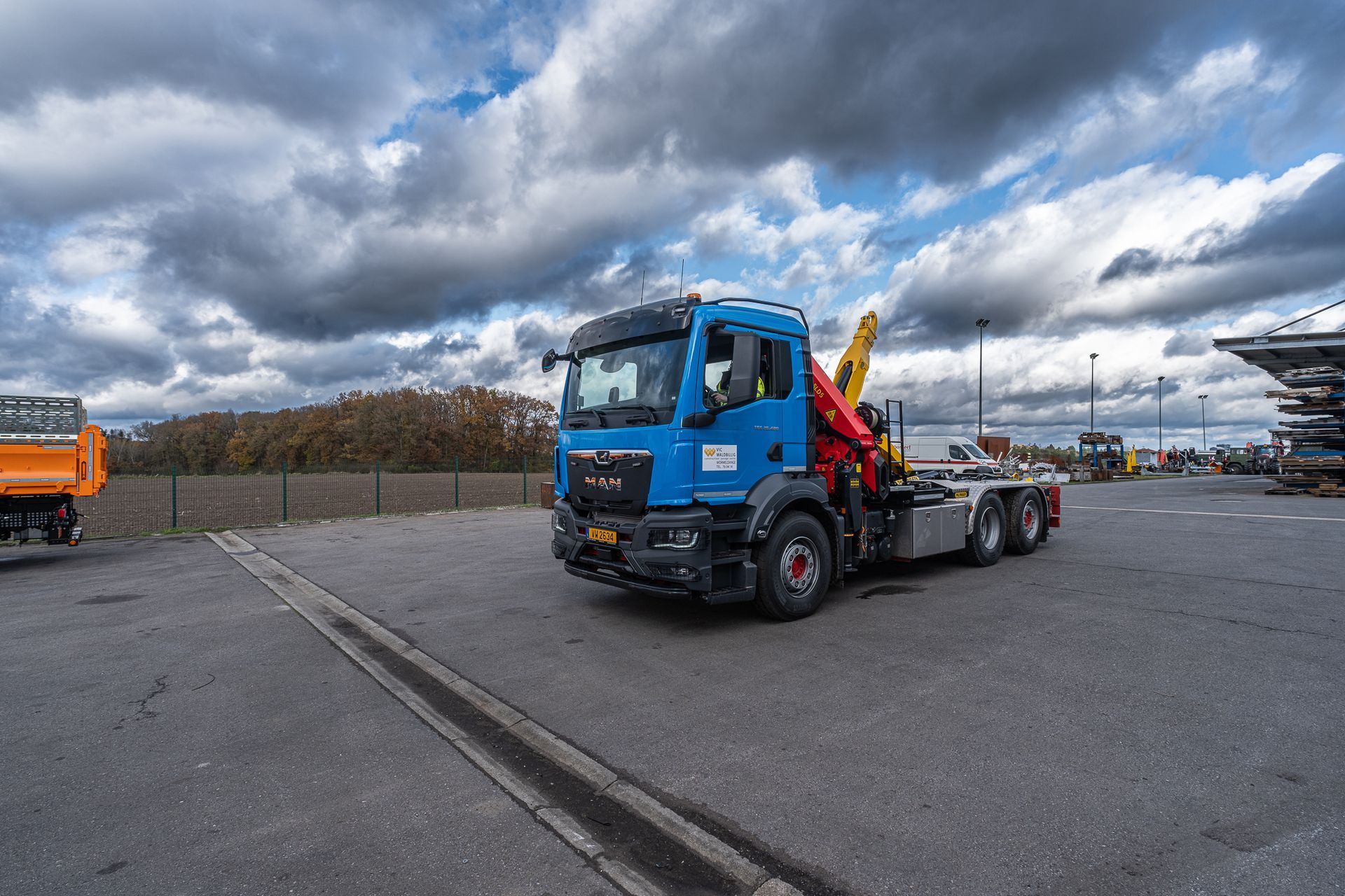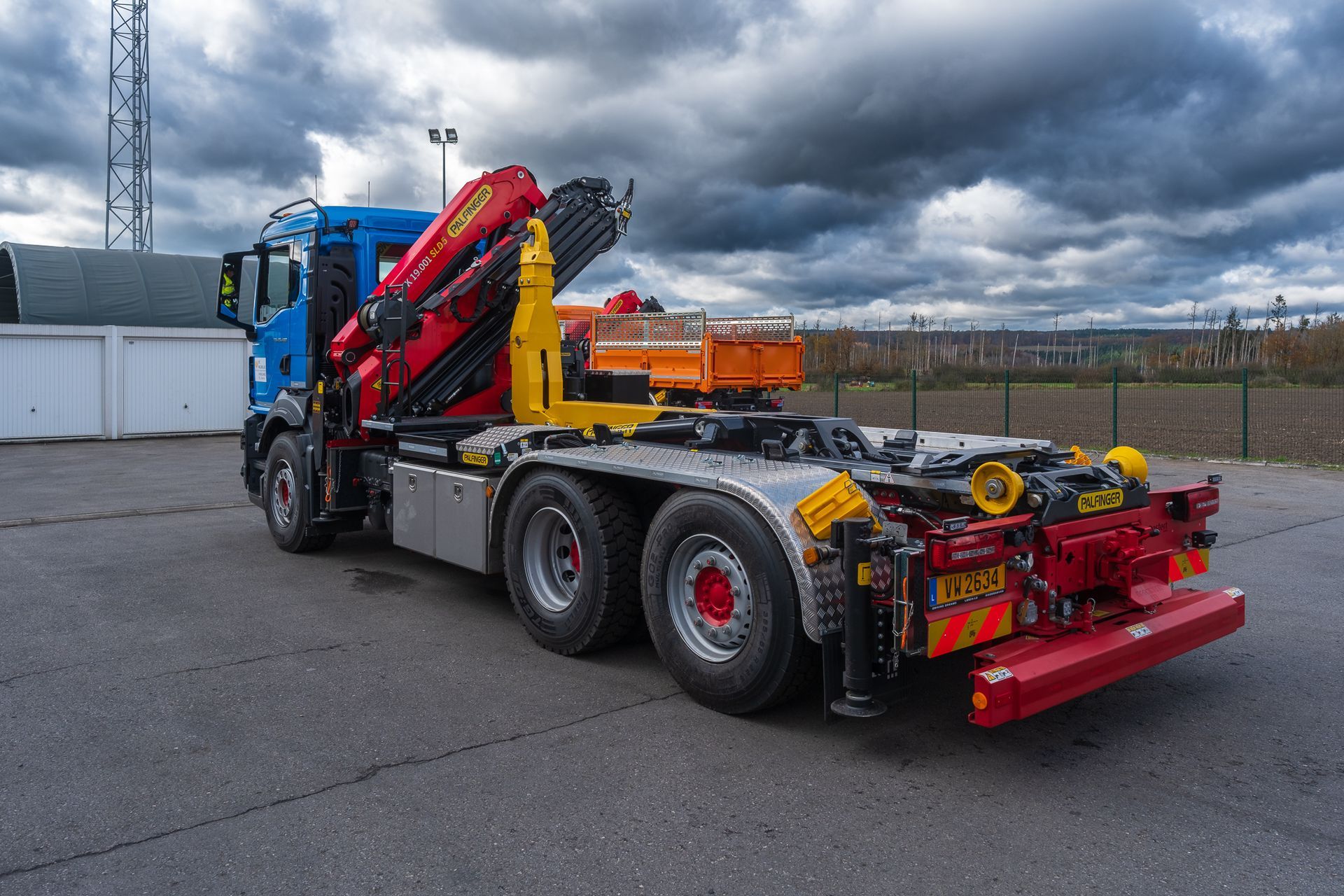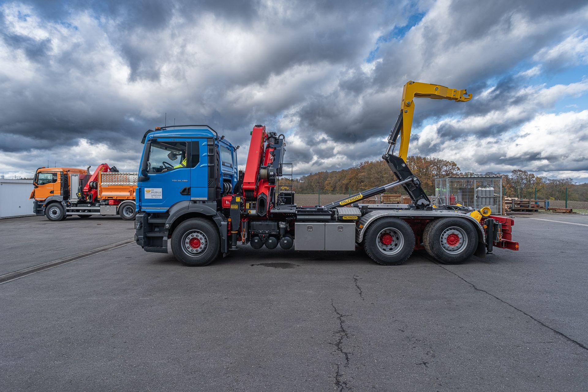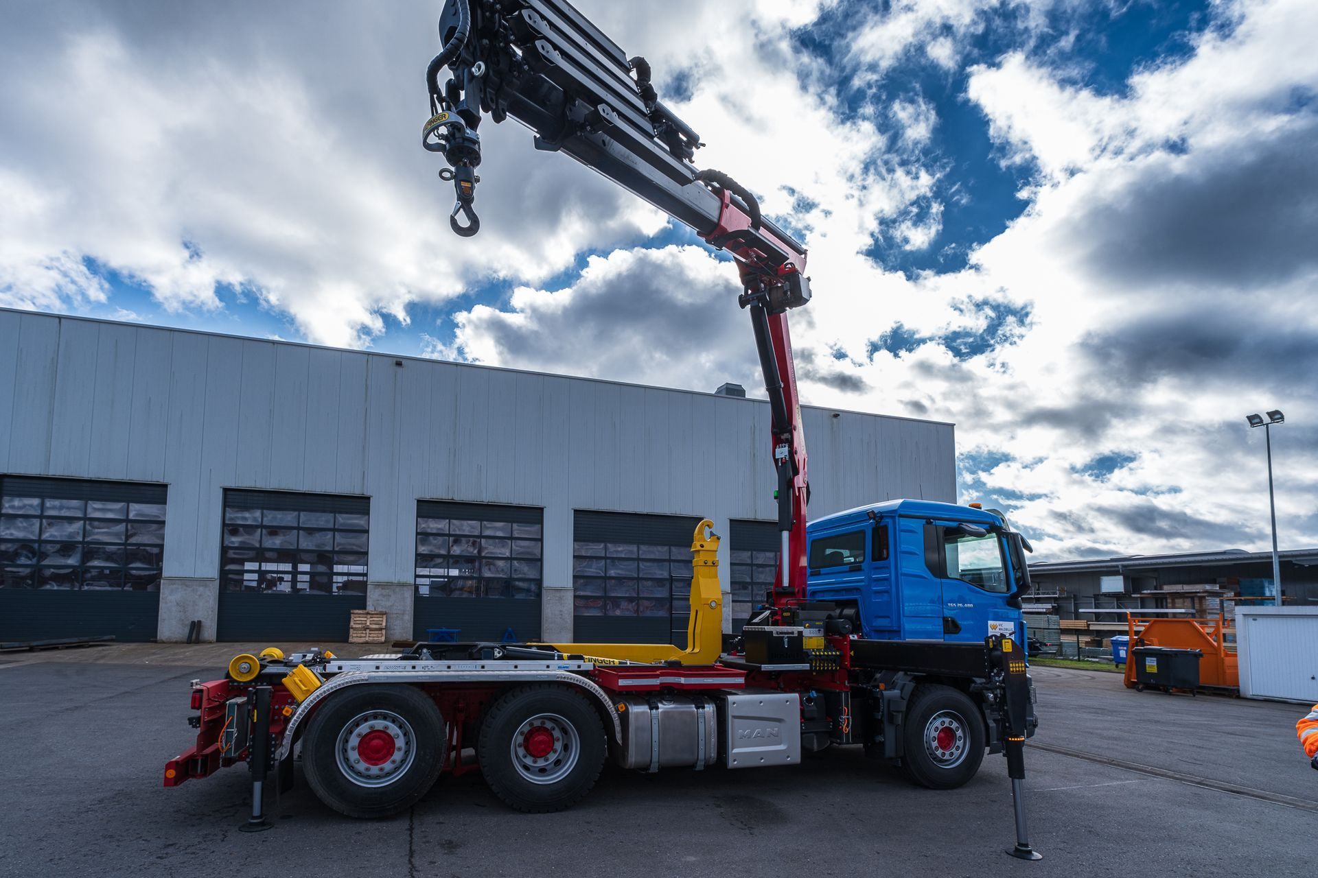 montiert mit einem Abroller P14A auf einem 3-achs MAN TGS Fahrgestelll