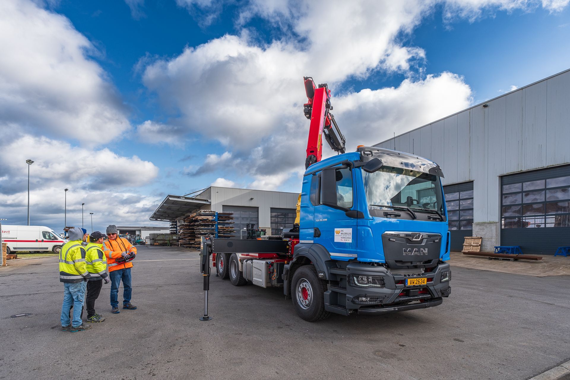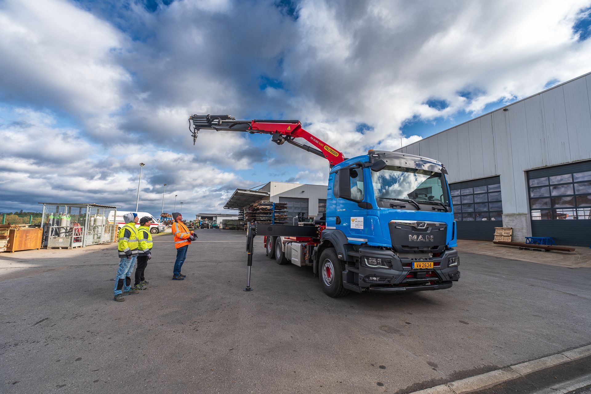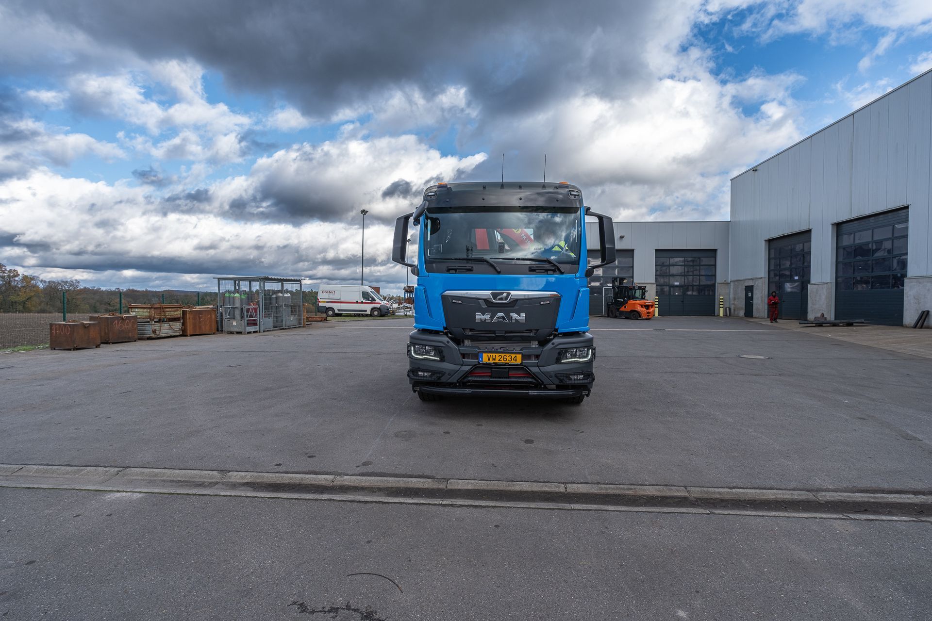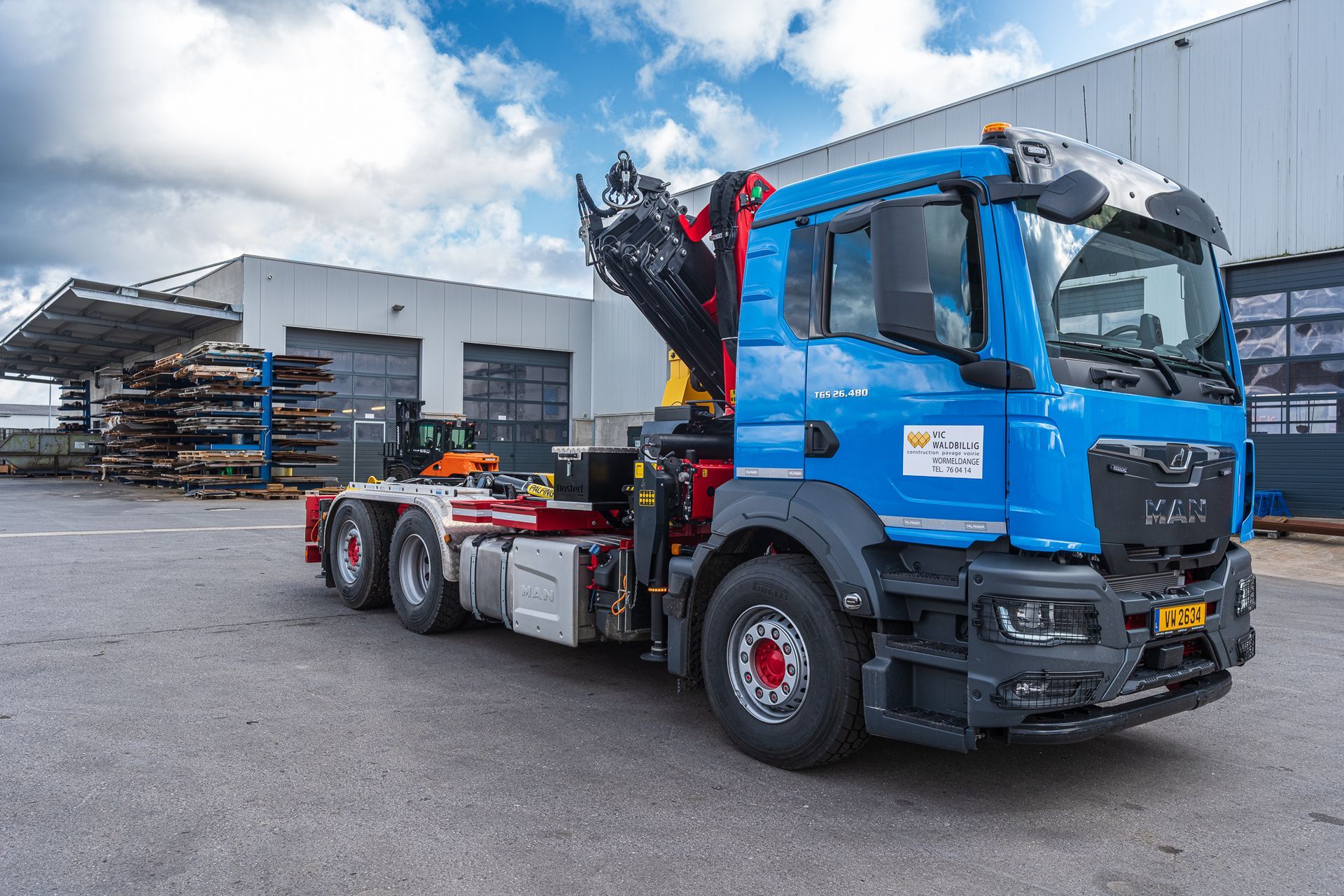 montiert mit einem Abroller P14A auf einem 3-achs MAN TGS Fahrgestelll