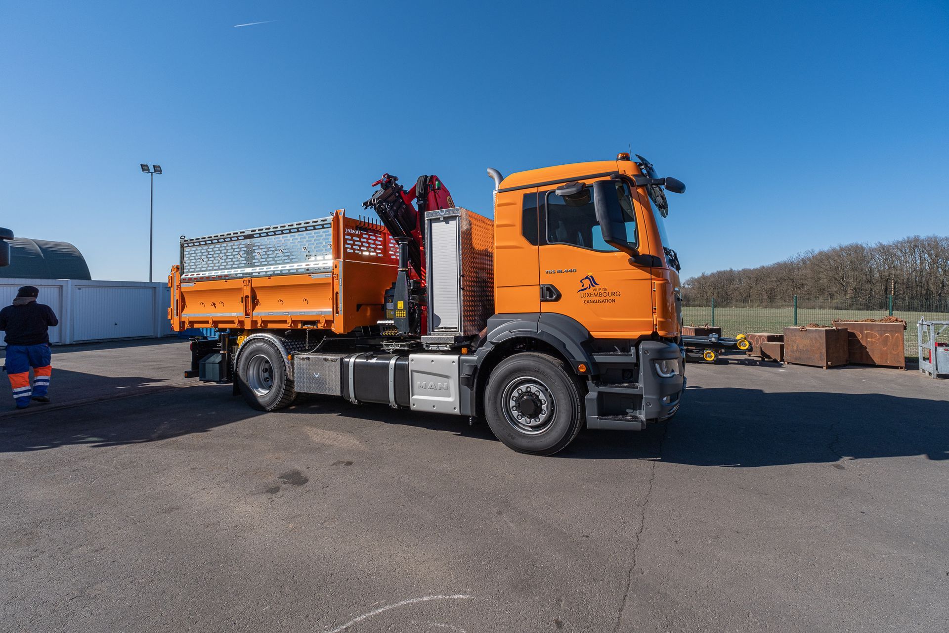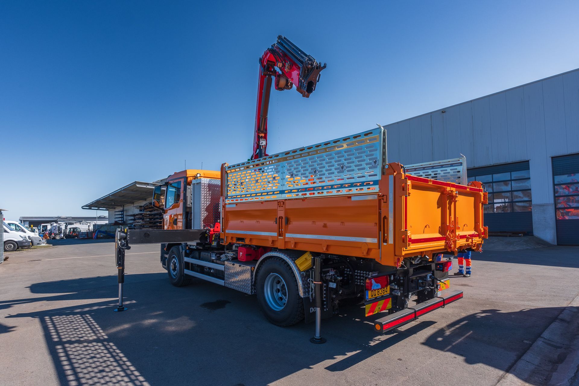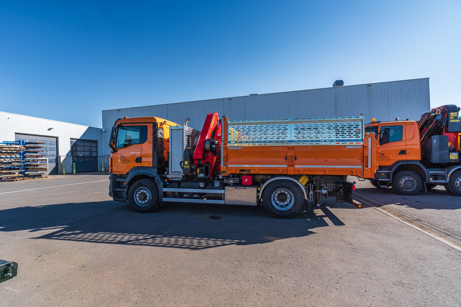 inklusive Seilwinde am Knickarm, montiert mit einem Vincent Kipper, auf einem MAN TGS Fahrgestell