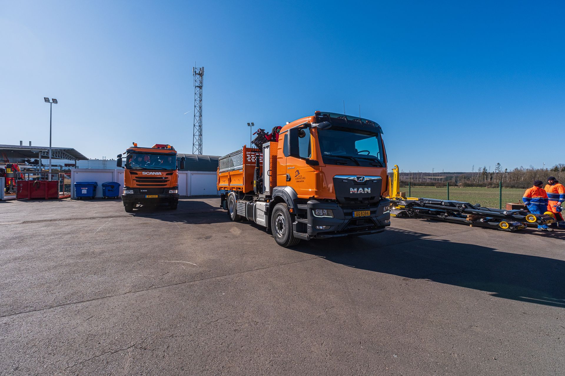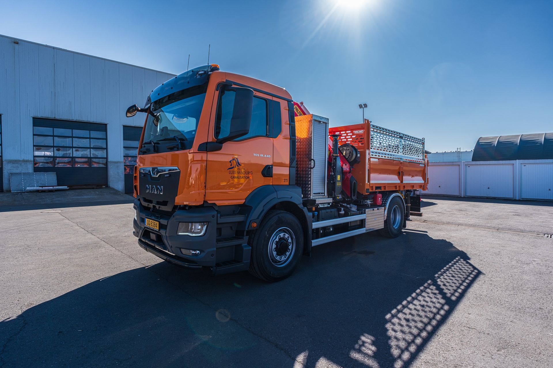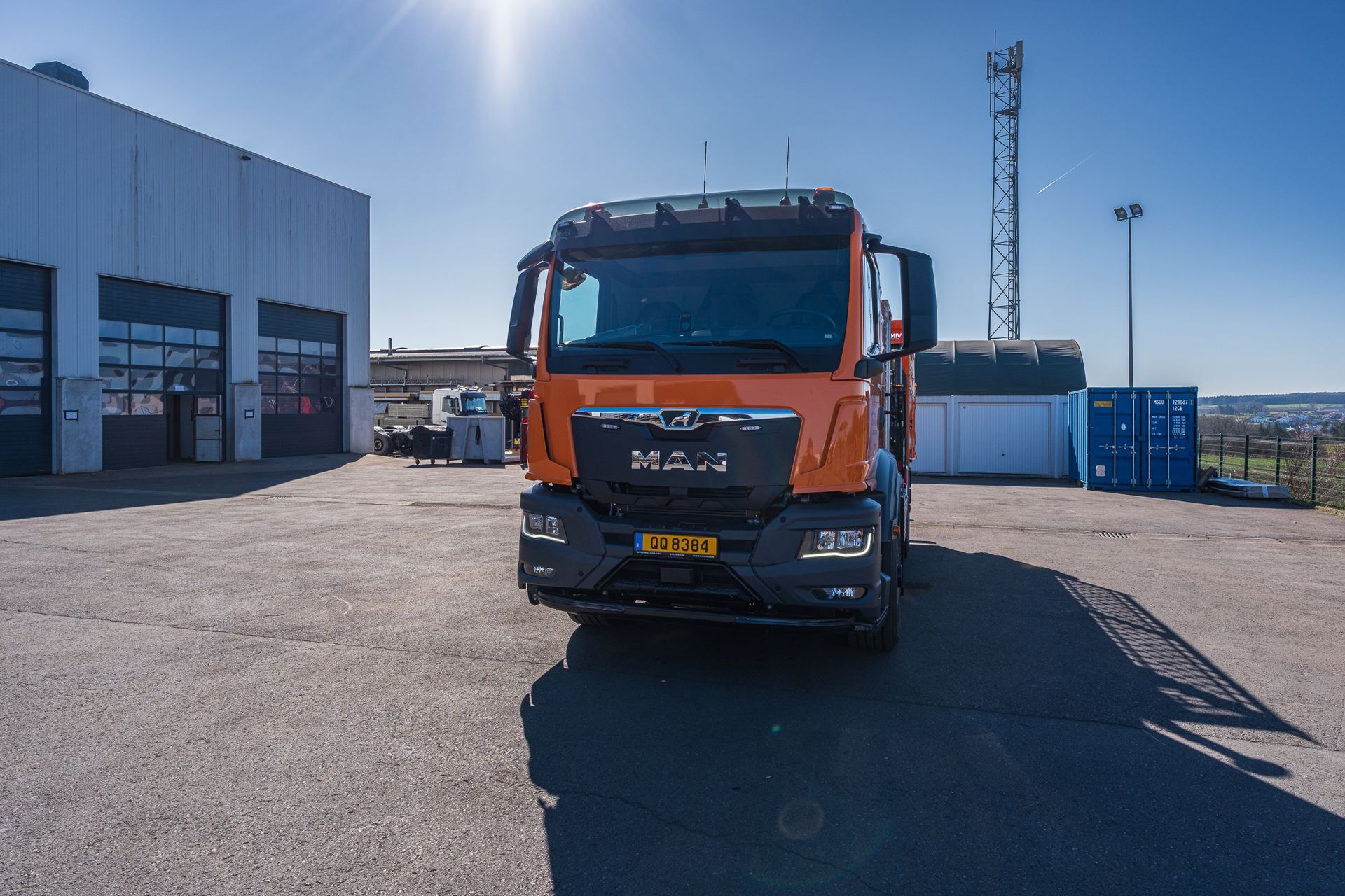 inklusive Seilwinde am Knickarm, montiert mit einem Vincent Kipper, auf einem MAN TGS Fahrgestell