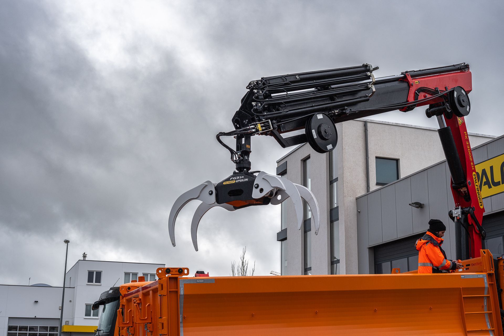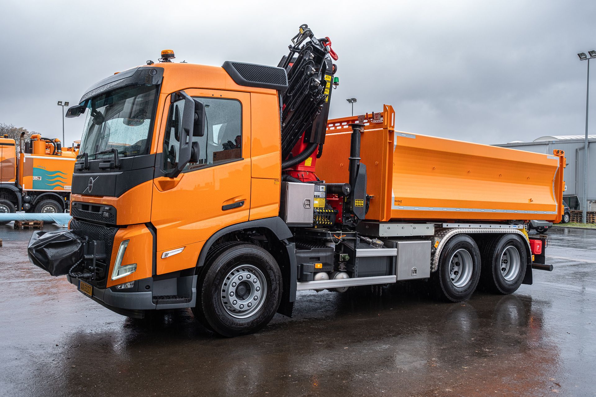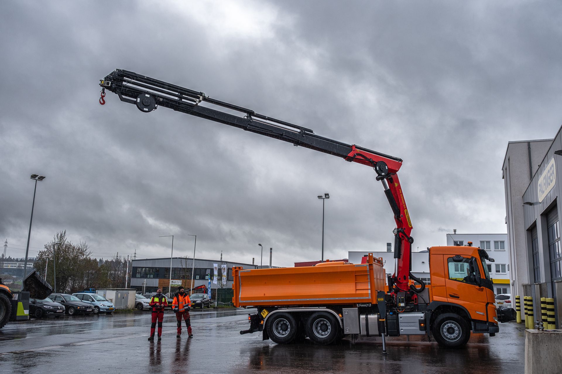 Palfinger Kran PK 33002-EH mit einem Carrosserie Vincent Heckkipper montiert auf einem Volvo 3-achs Fahrgestell