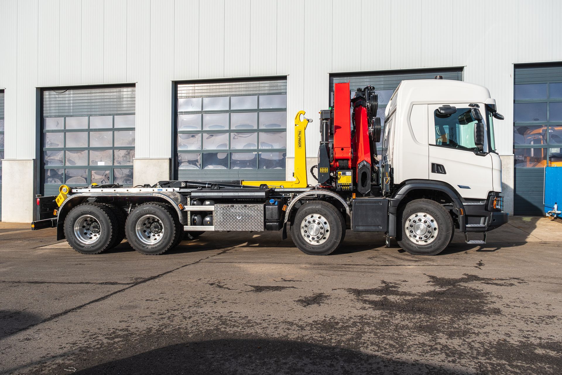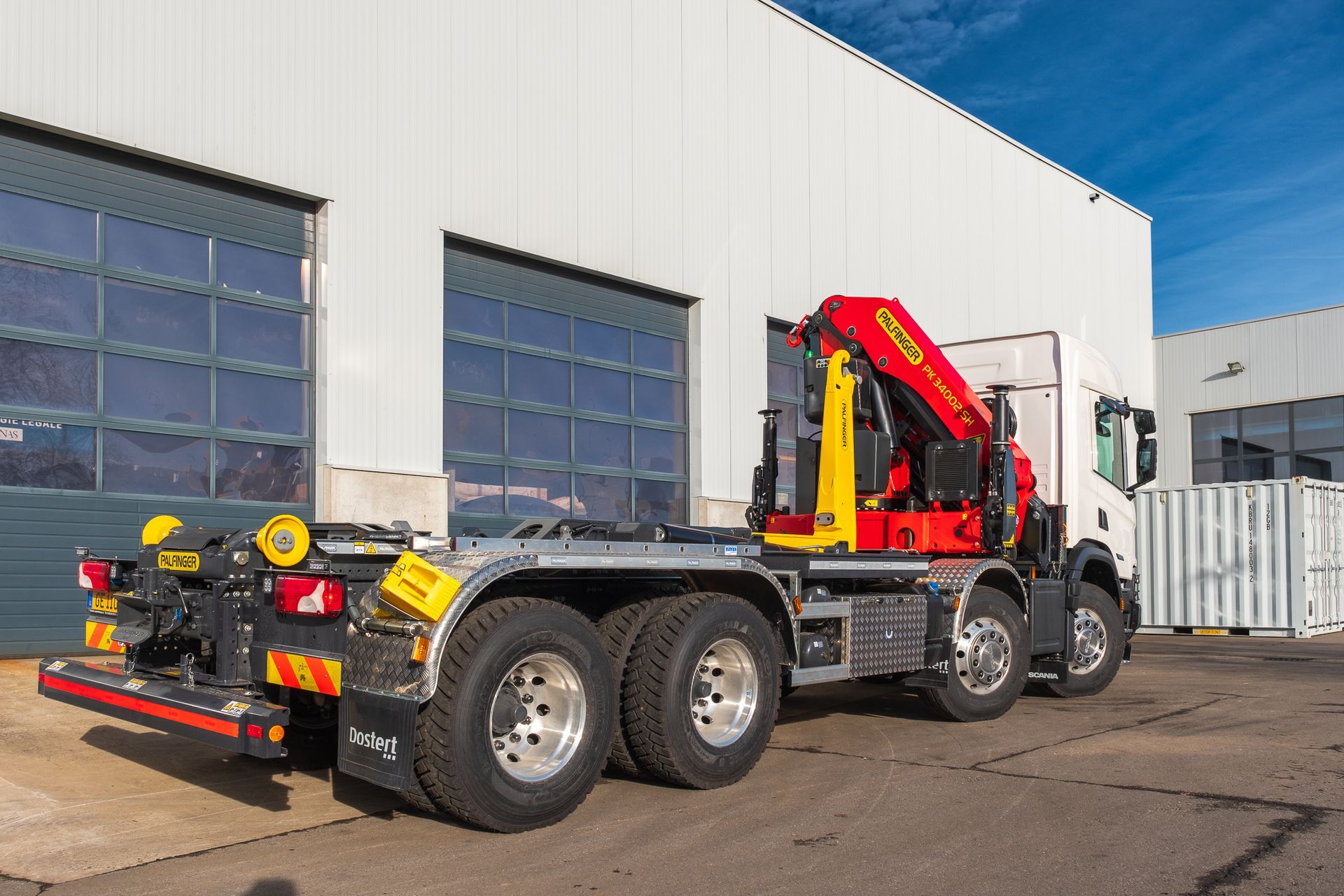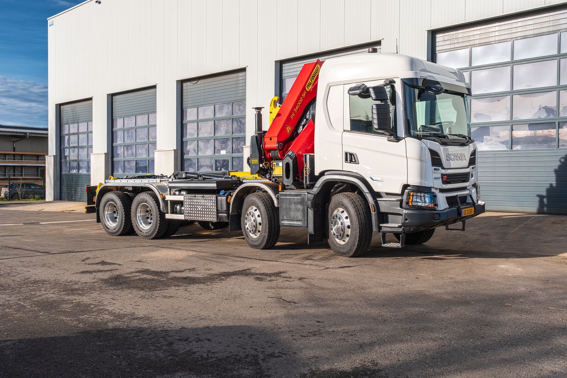 Palfinger Kran PK 34002-SH G mit einem HT22TEC montiert auf einem Scania 4-achs Fahrgestell