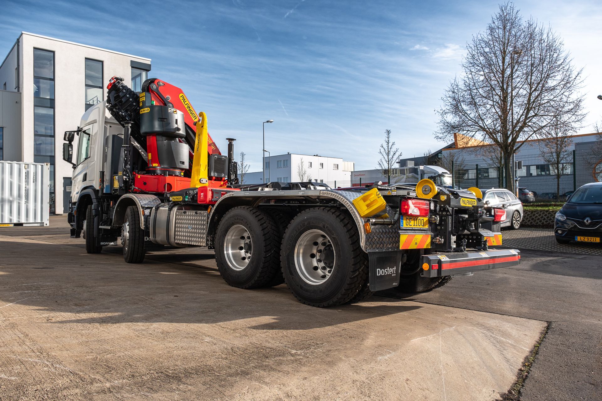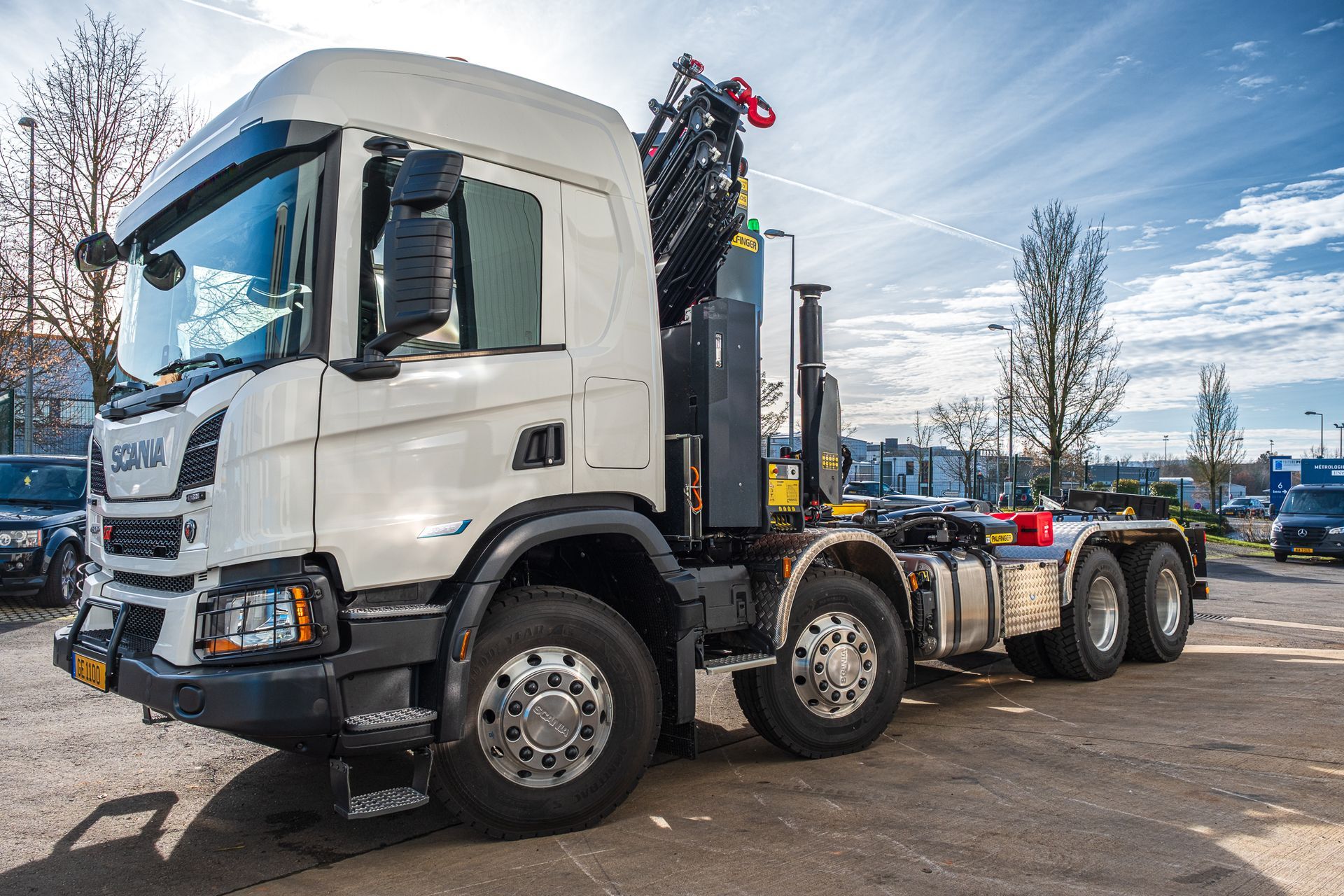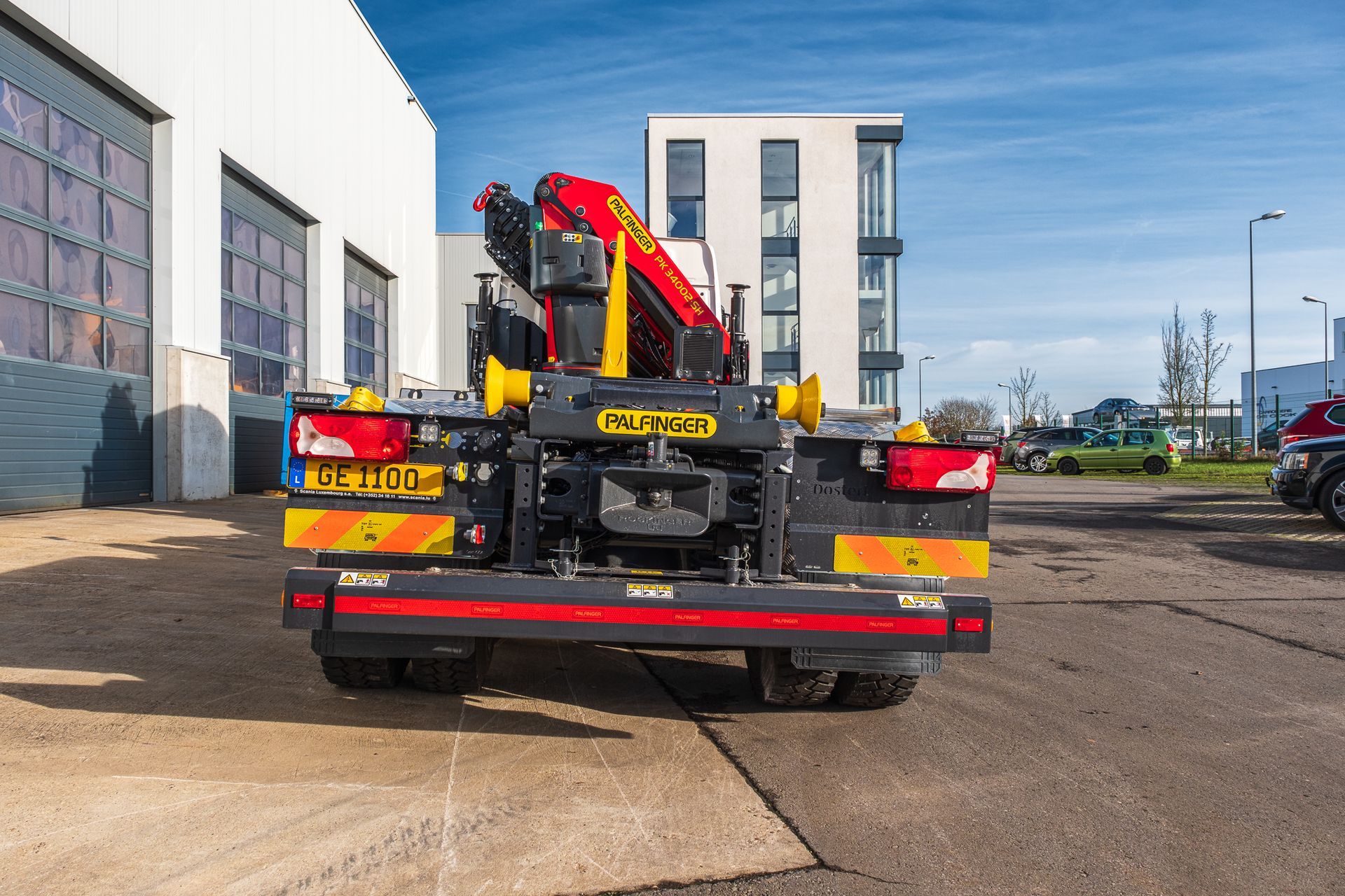 Palfinger Kran PK 34002-SH G mit einem HT22TEC montiert auf einem Scania 4-achs Fahrgestell