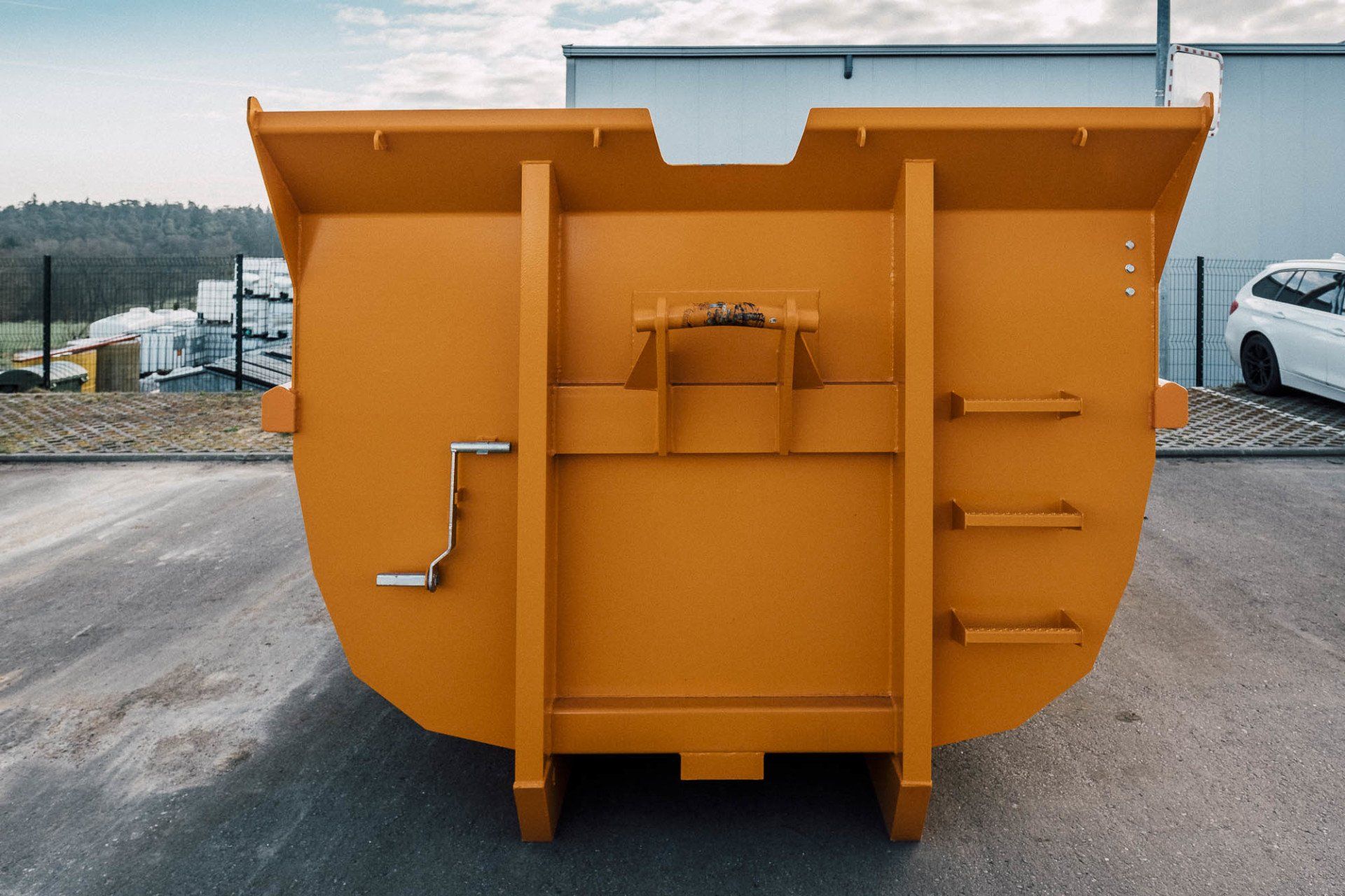 Container von unserem Lieferanten SIRCH, für den Asphalttransport, mit Sörlingklappe und Abdeckplane