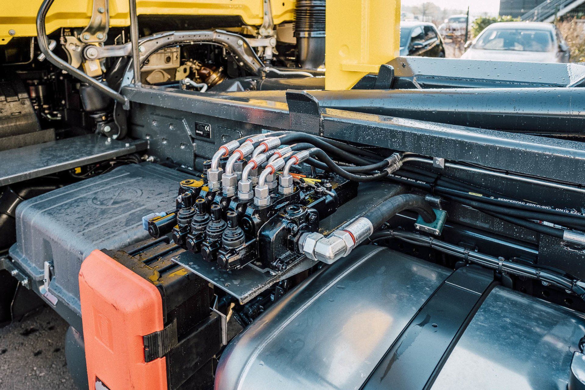 Abrollkipper vom bestehenden Fahrzeug demontiert