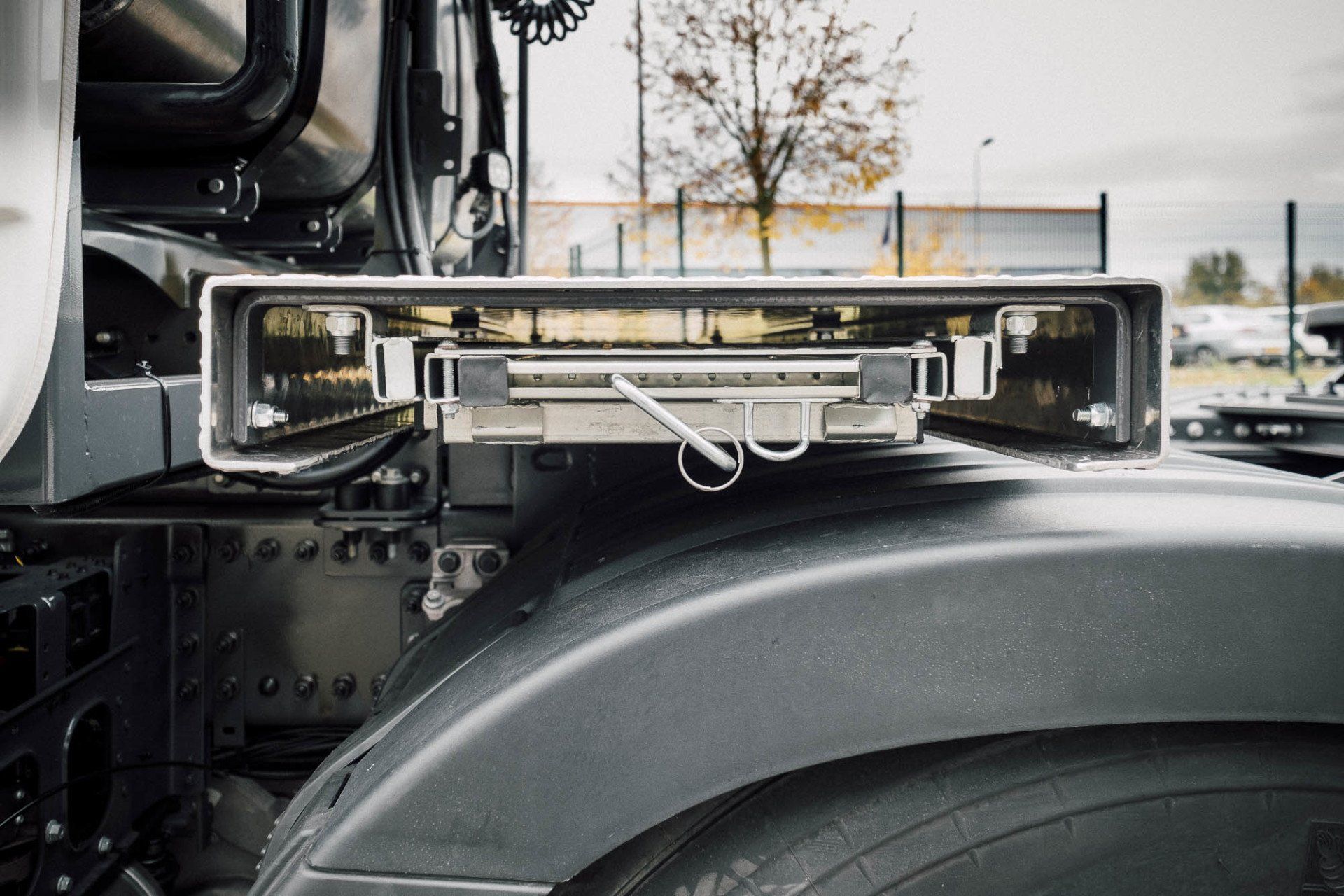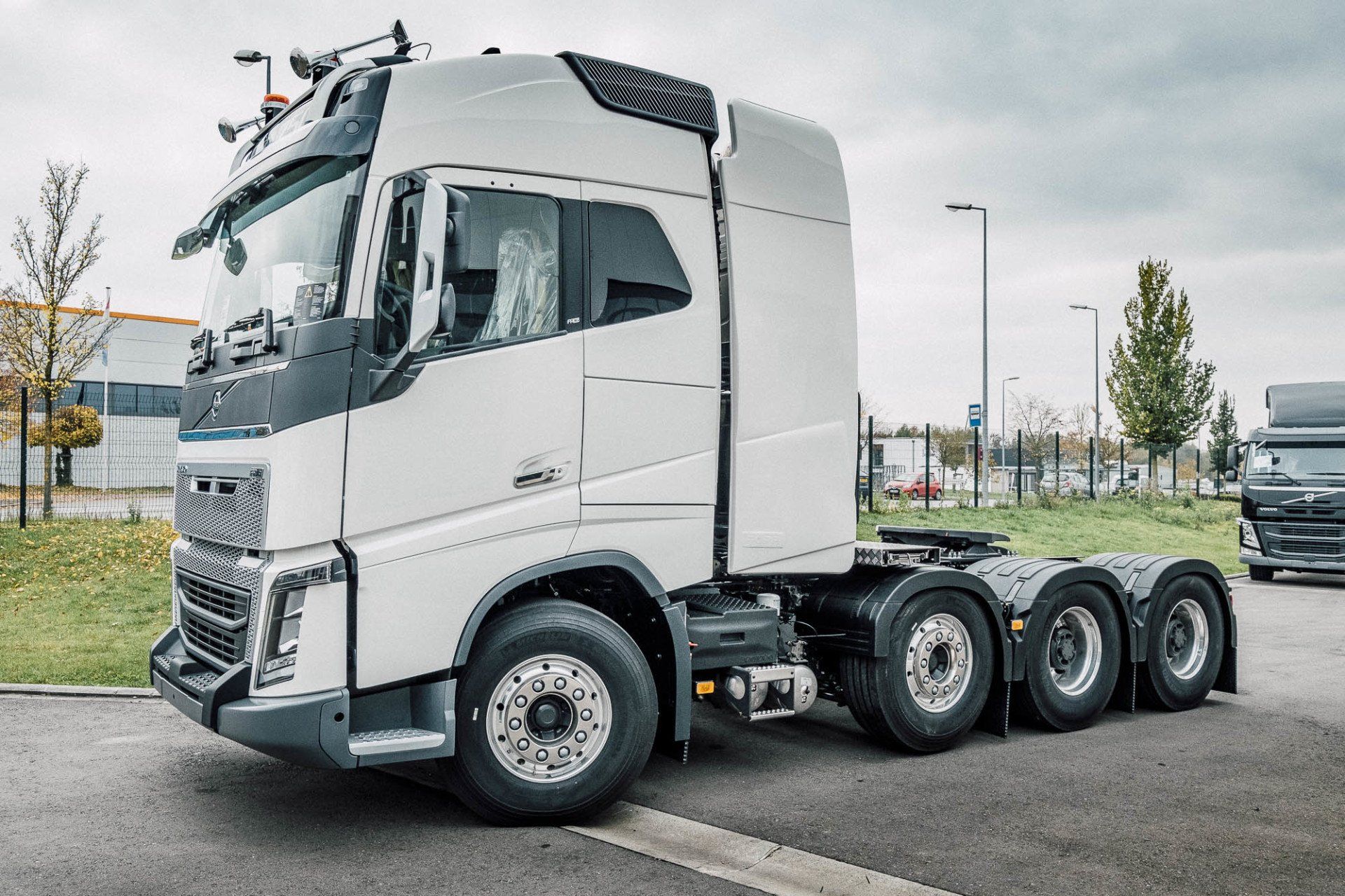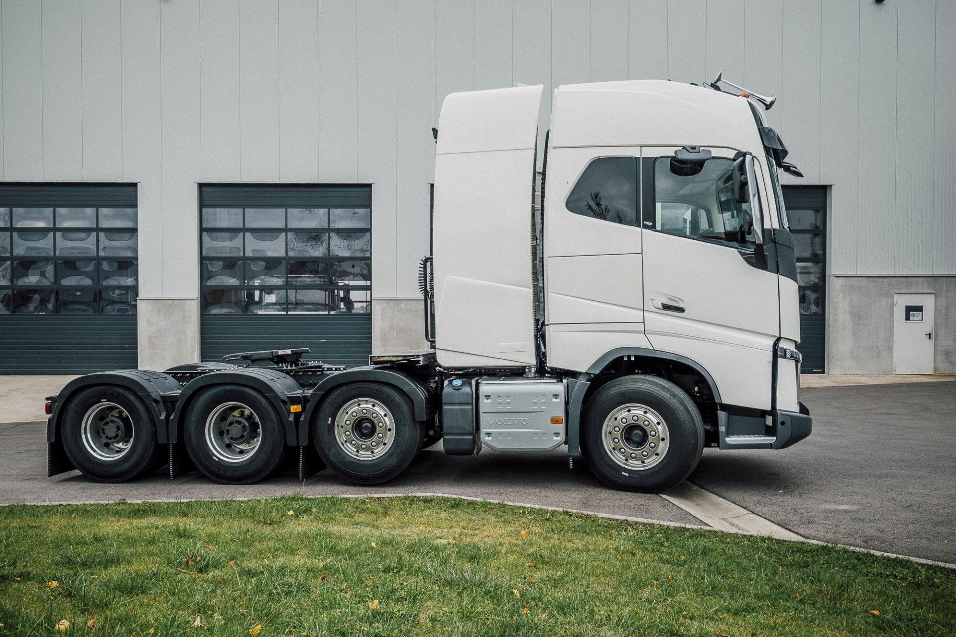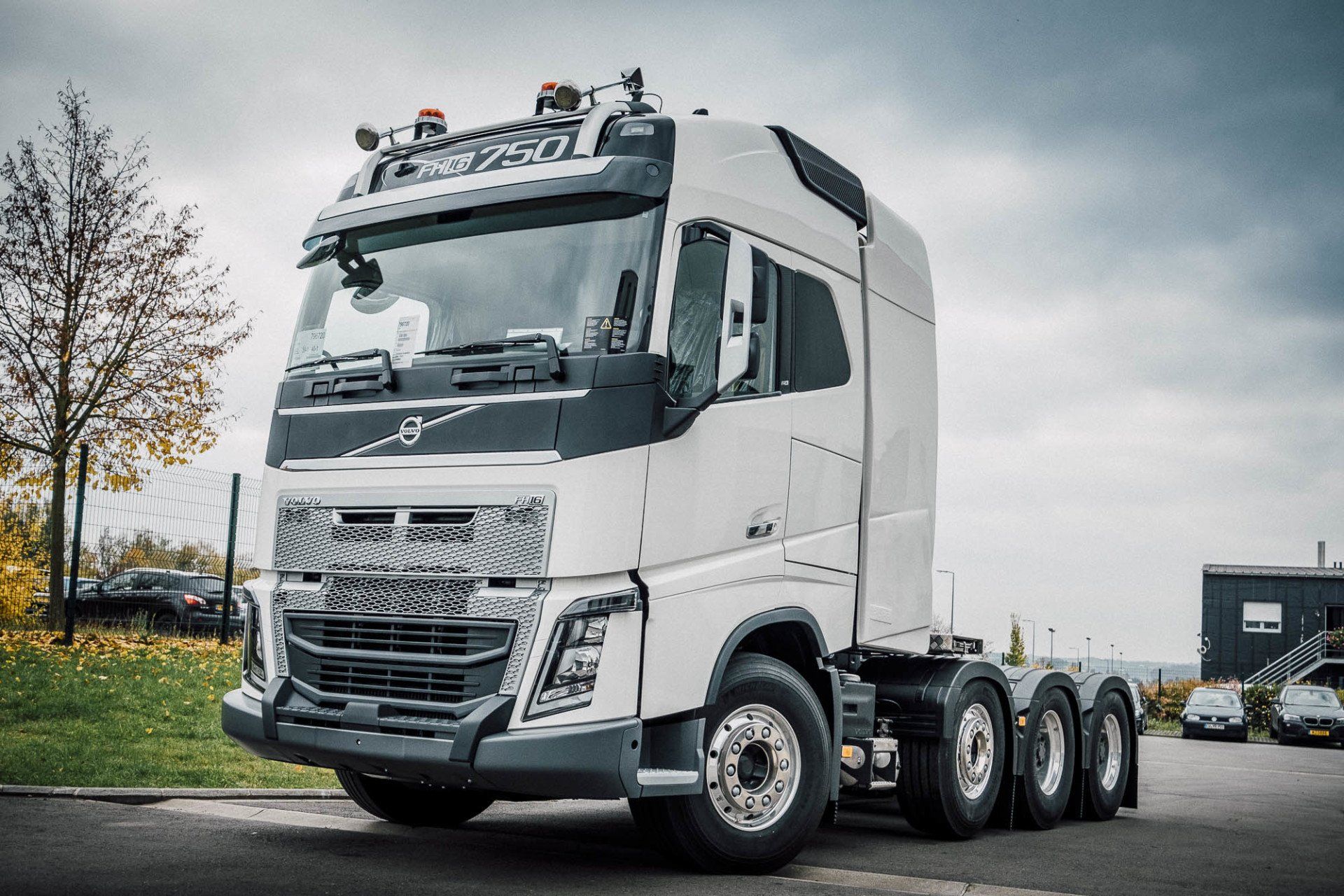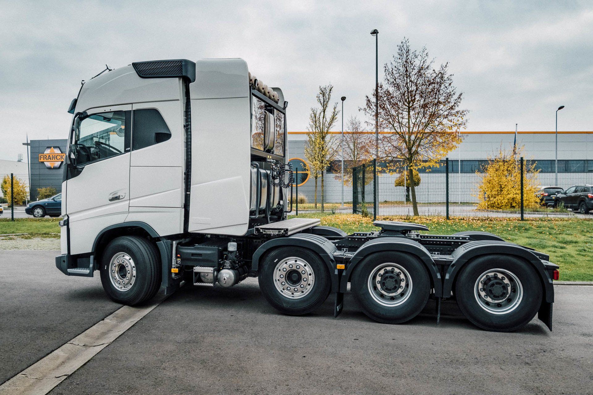 Aufbau eines Schwerlasturmes und Seitenverkleidung, mit Hydraulik für Anhänger an einem Volvo FH16