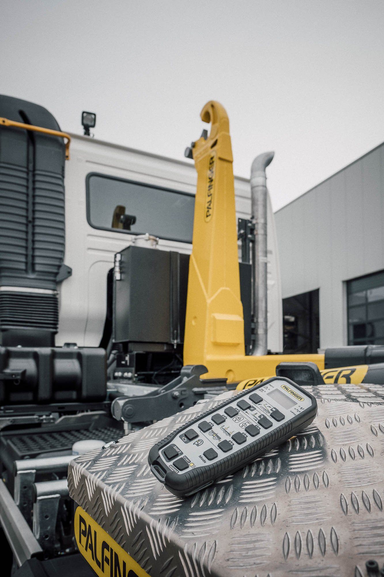 mit Funkfernsteuerung, montiert auf einem 2-achs Volvo FMX Fahrgestell