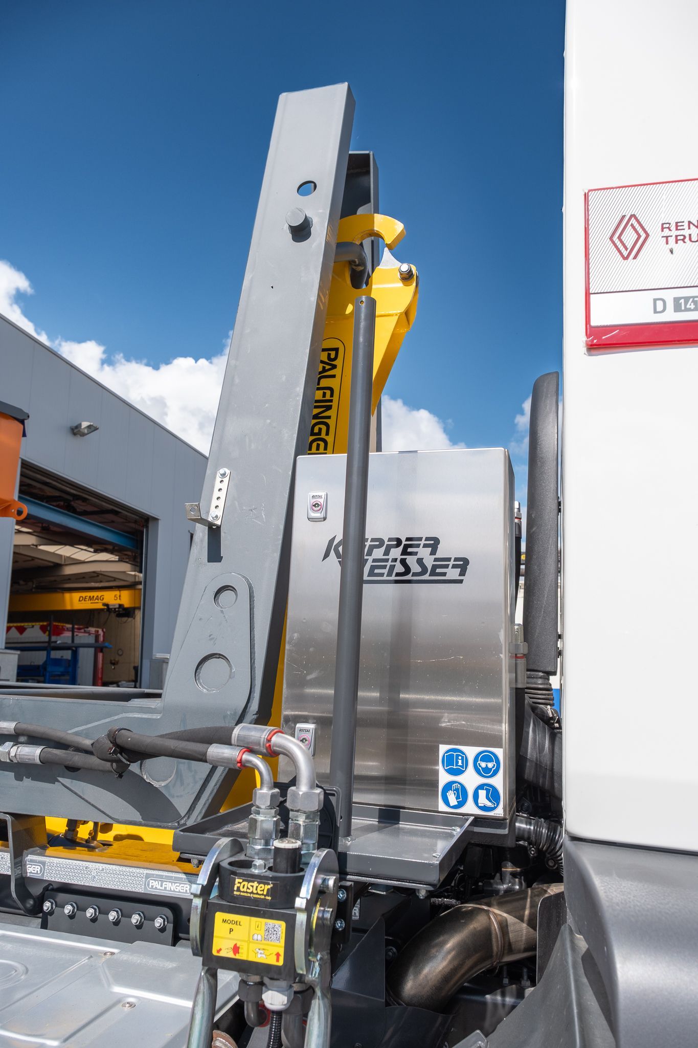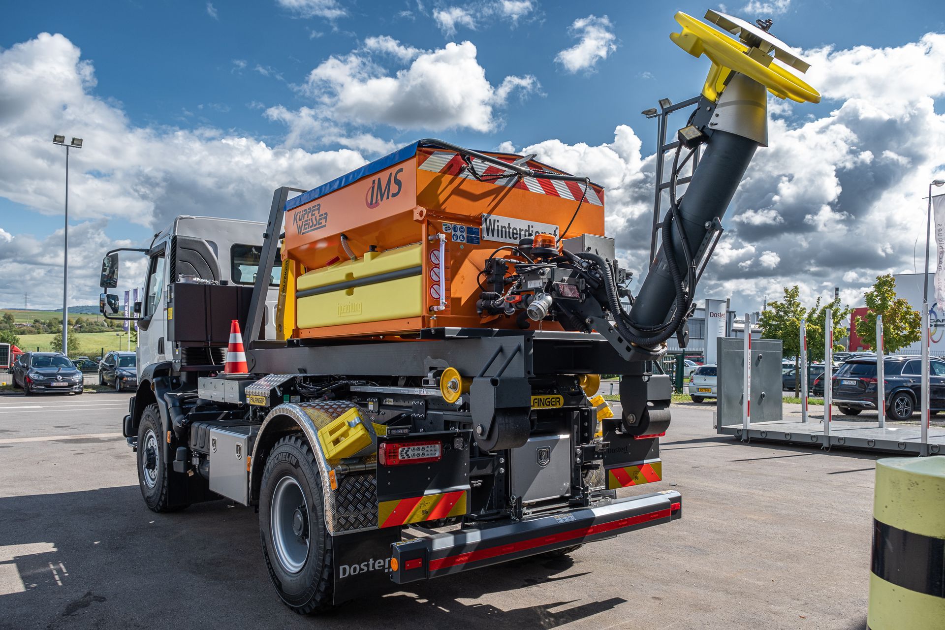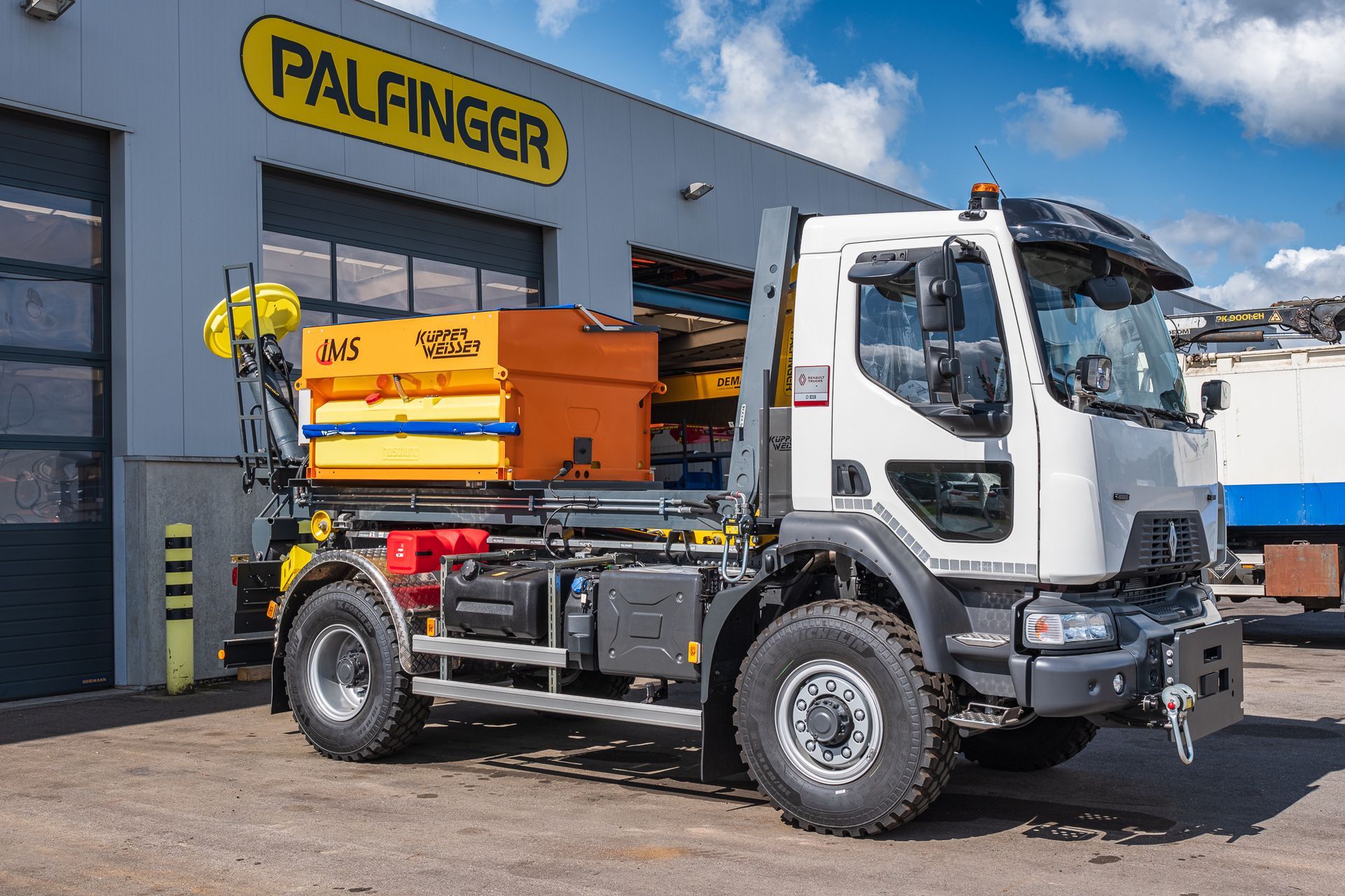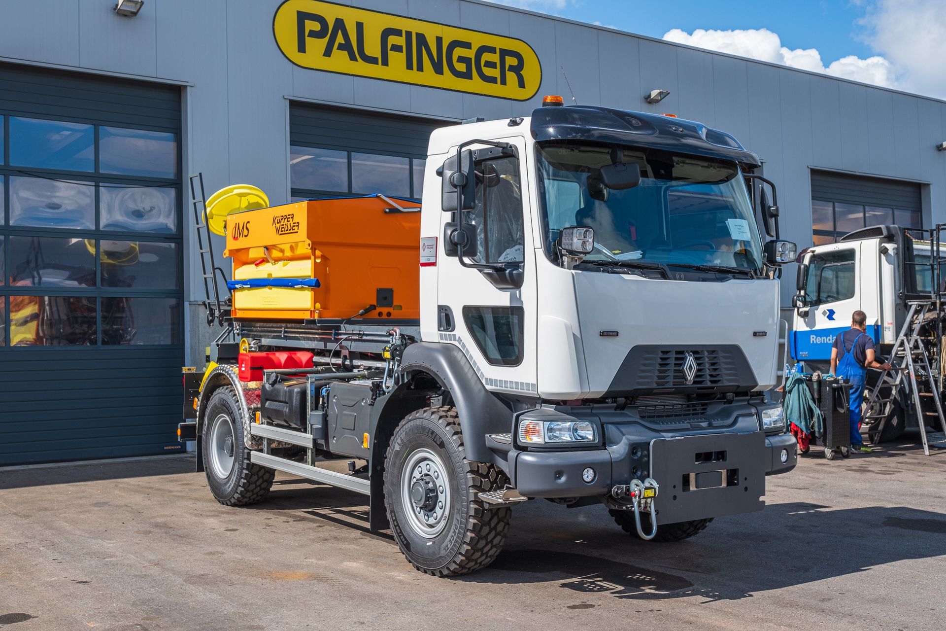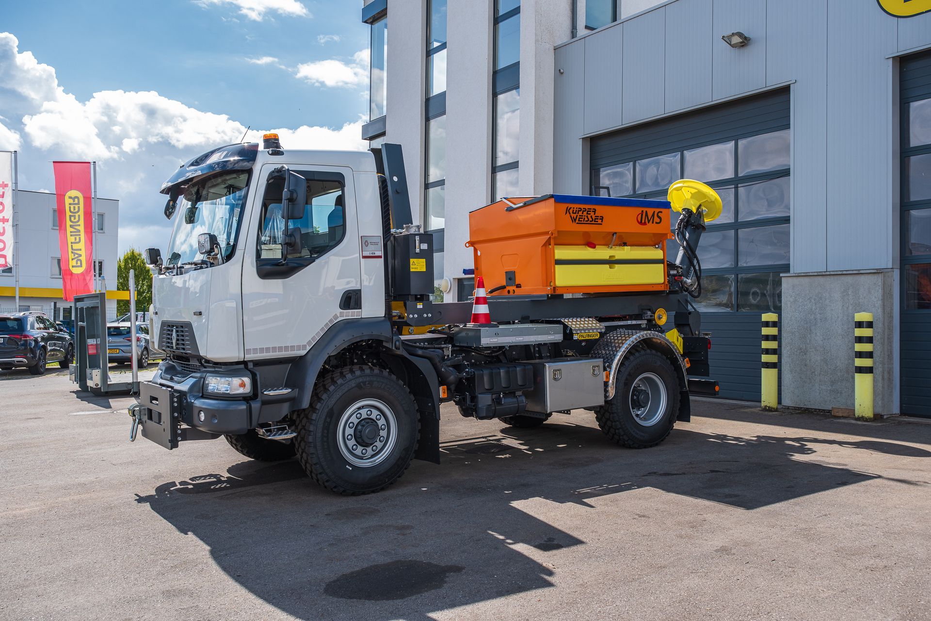 inklusive einem Küpper Weisser IMS Streuer, und Schmidt Schneepflug, montiert auf einem 2-achs Renault Fahrgestell