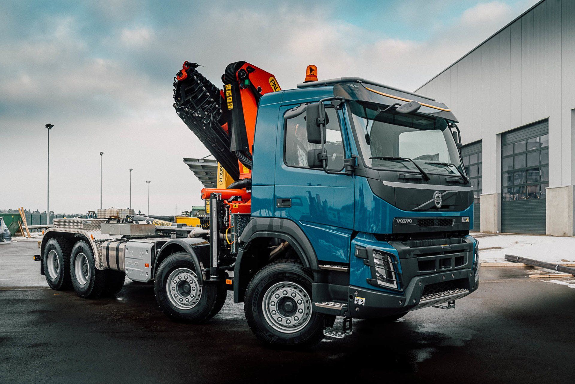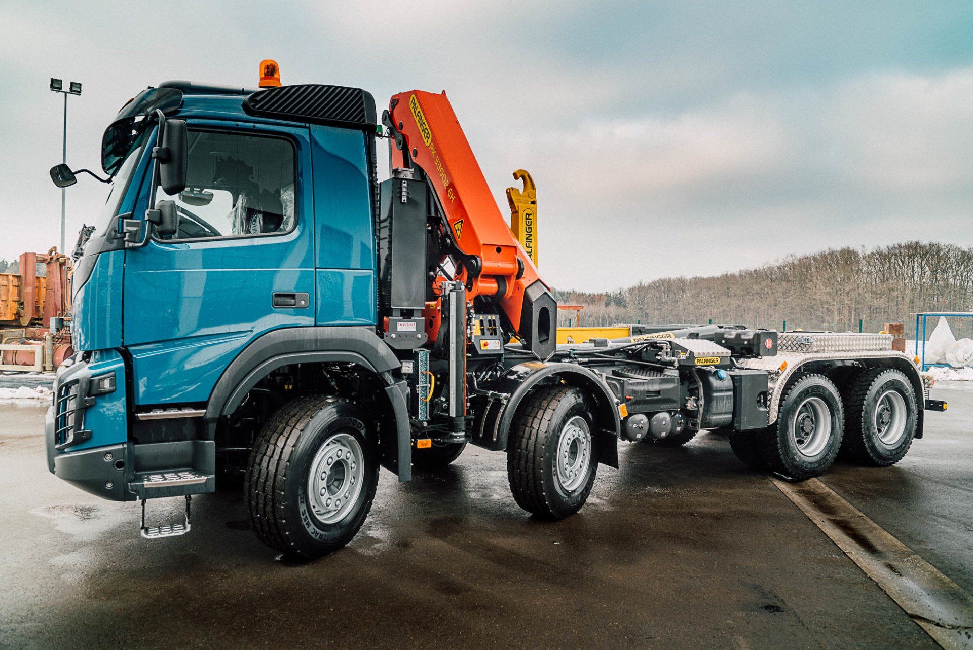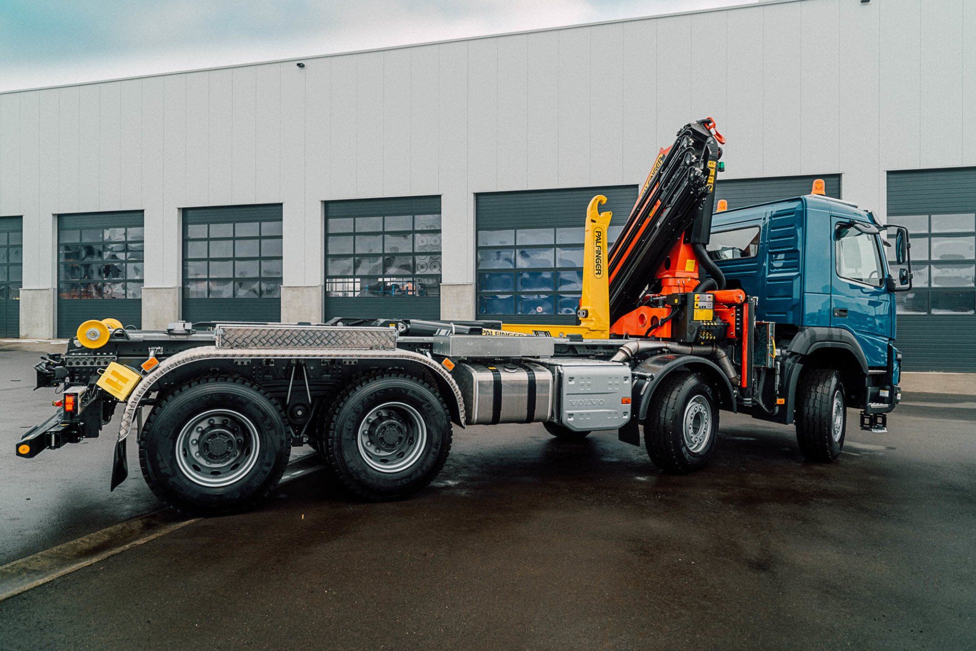 mit ein T24 Abrollkipper, montiert auf einem 4-achs Volvo FMX Fahrgestell