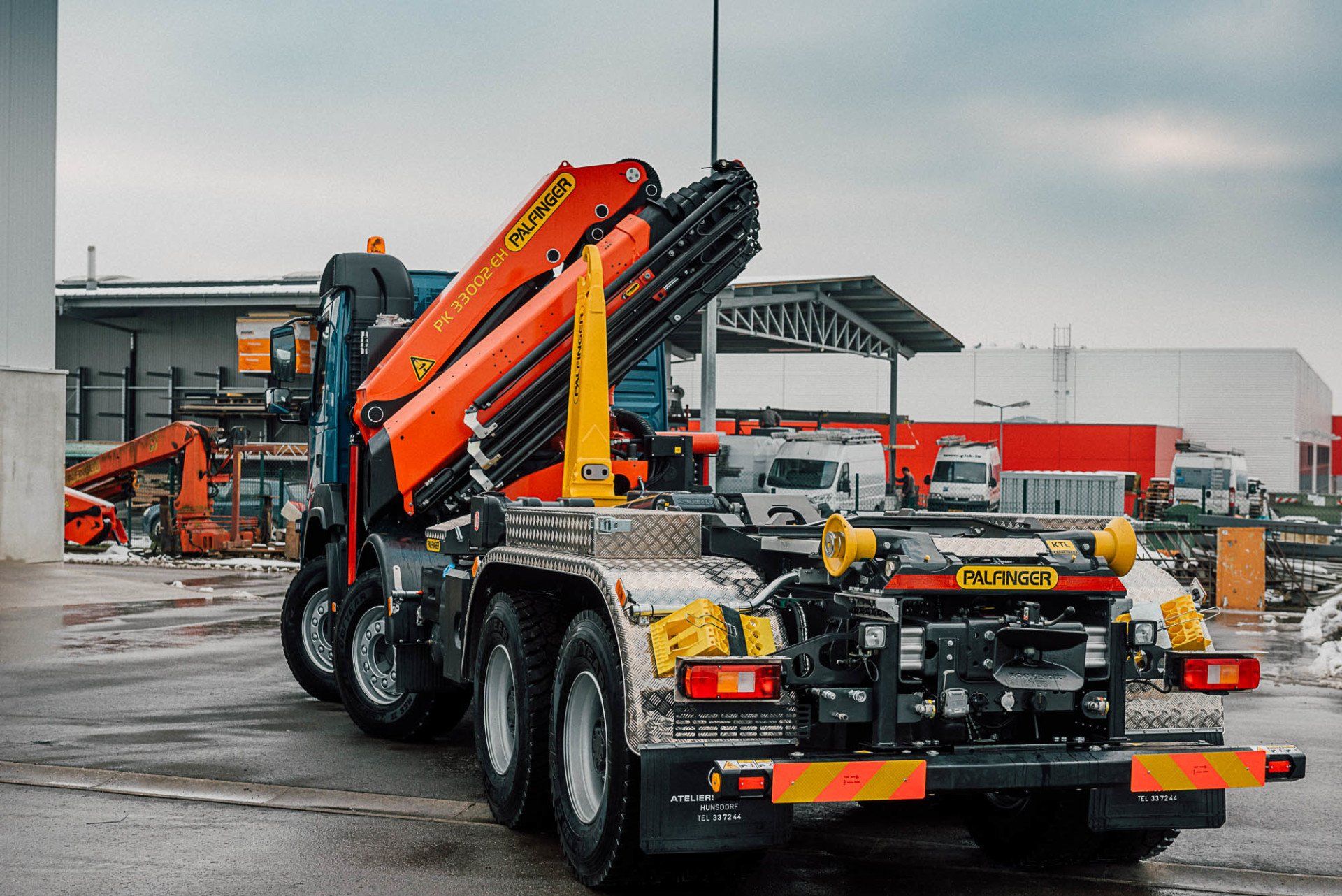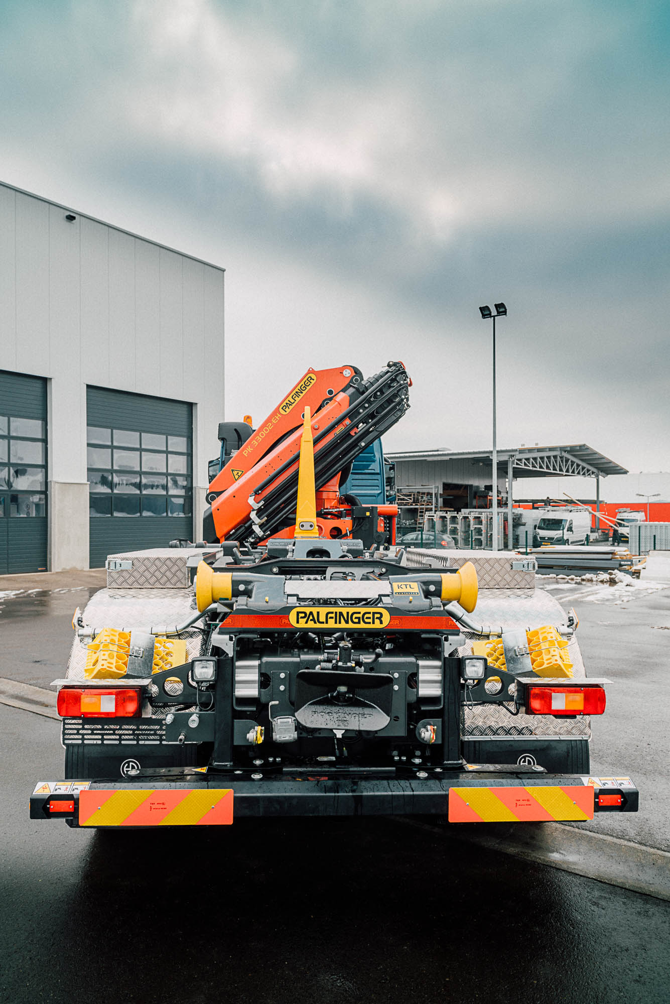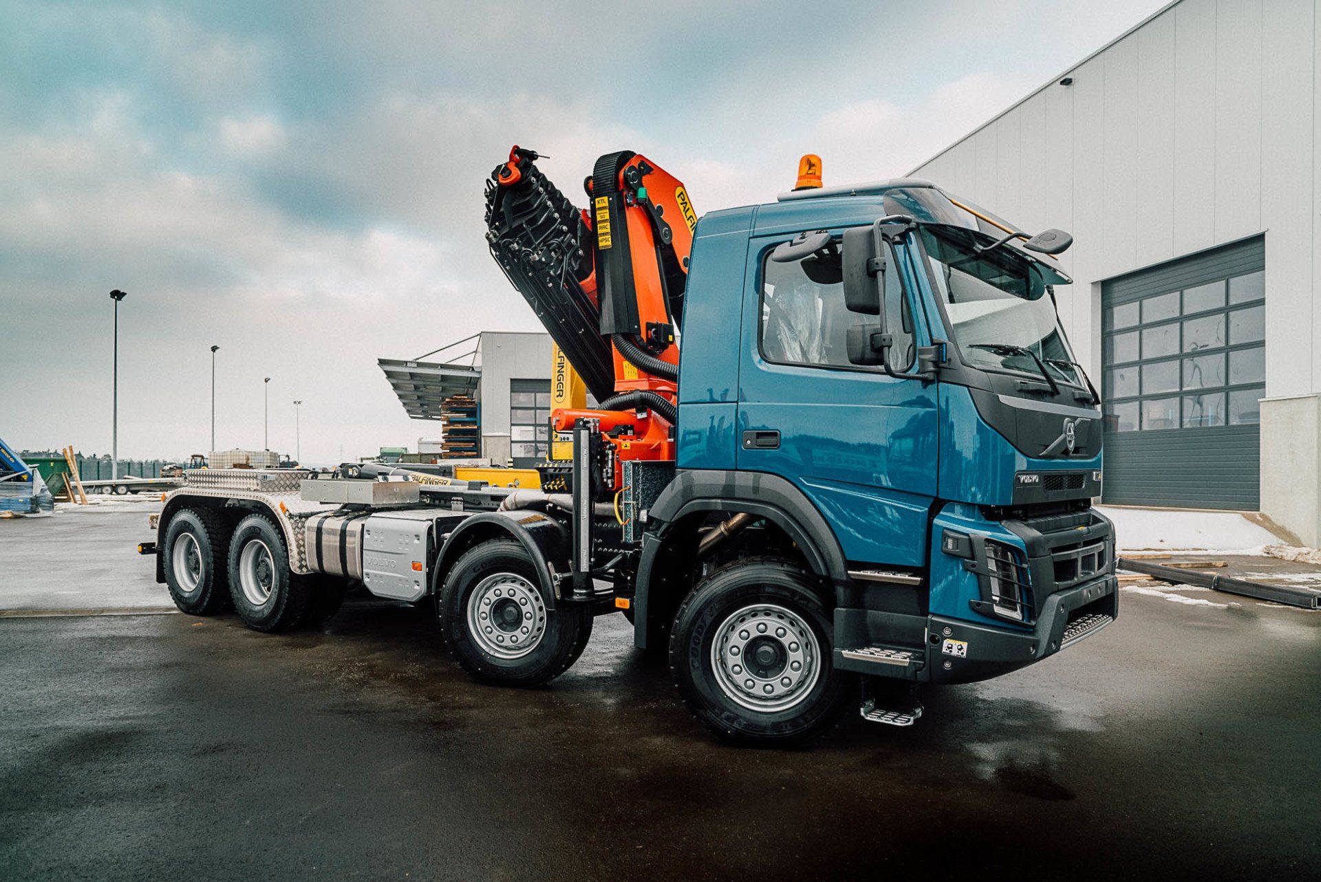 mit ein T24 Abrollkipper, montiert auf einem 4-achs Volvo FMX Fahrgestell