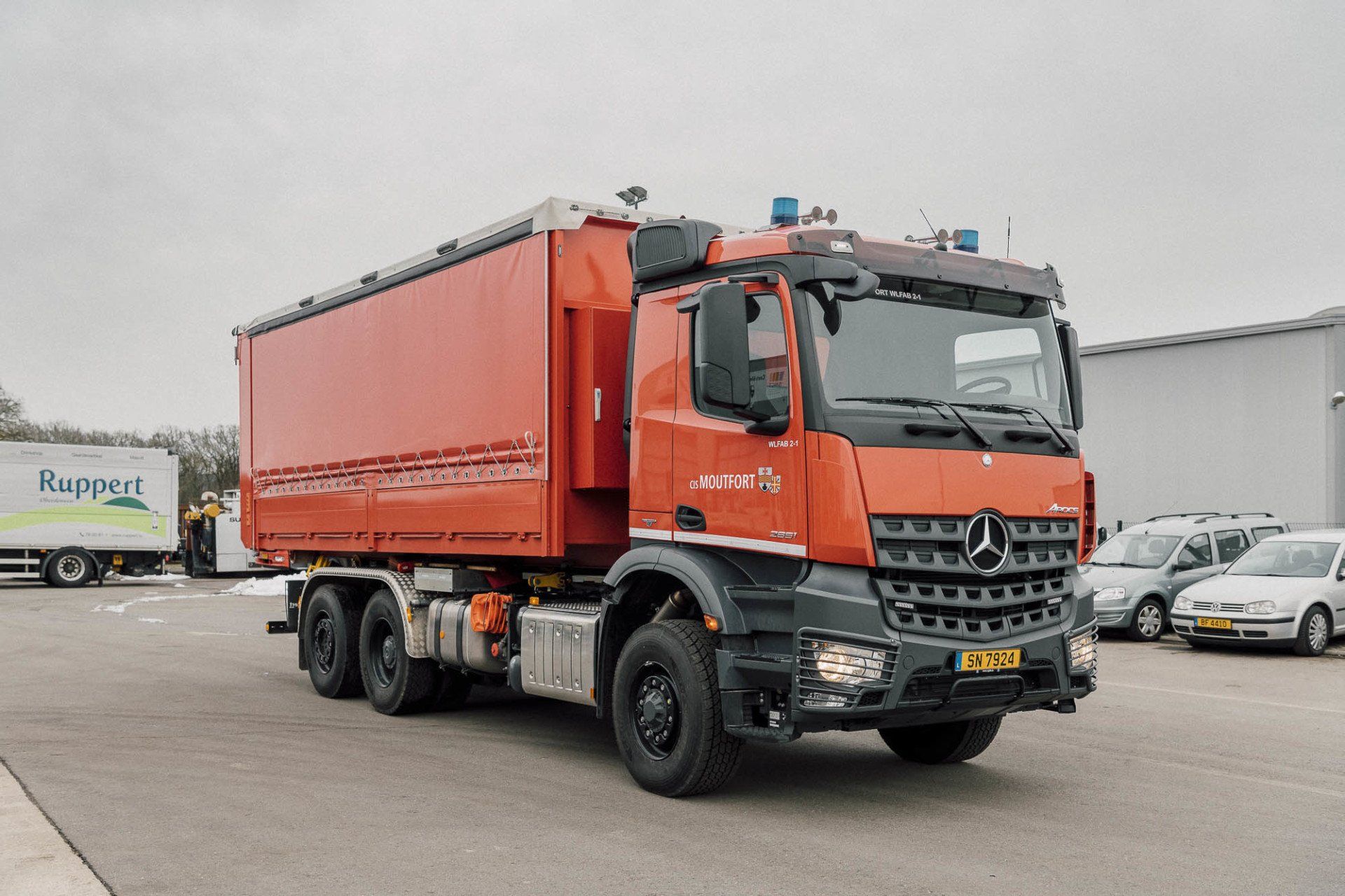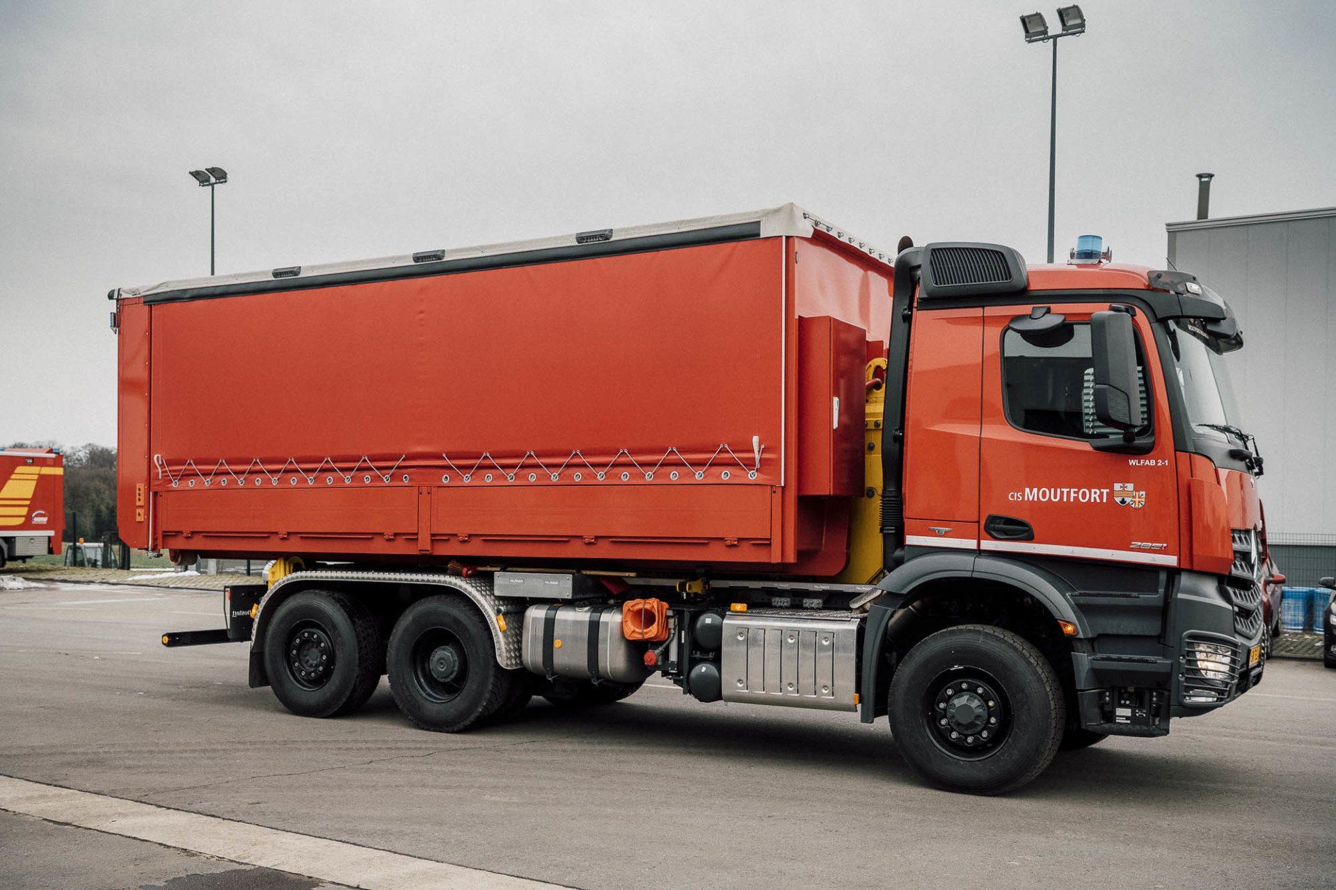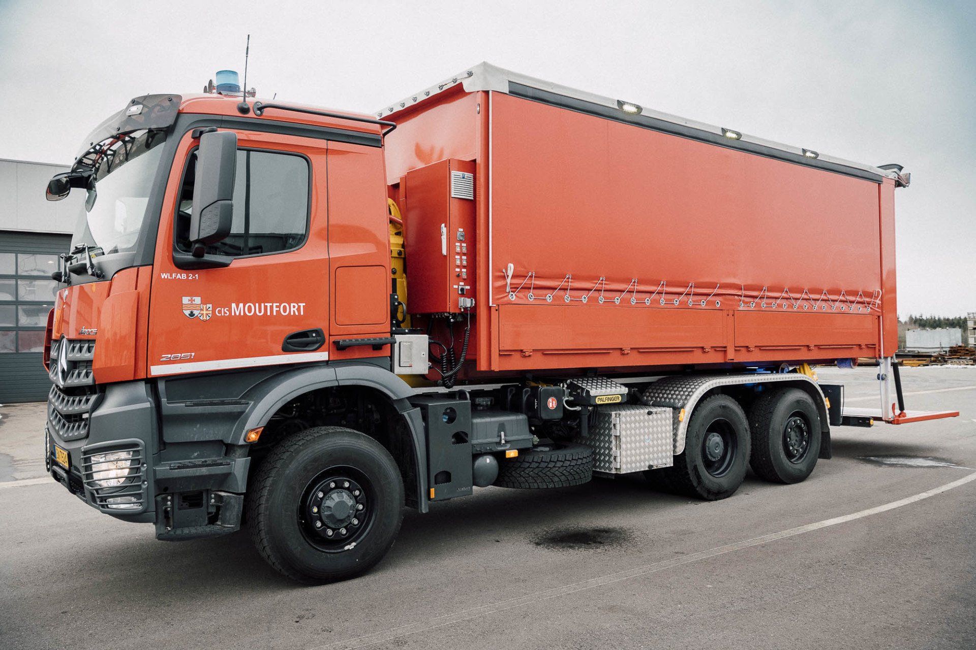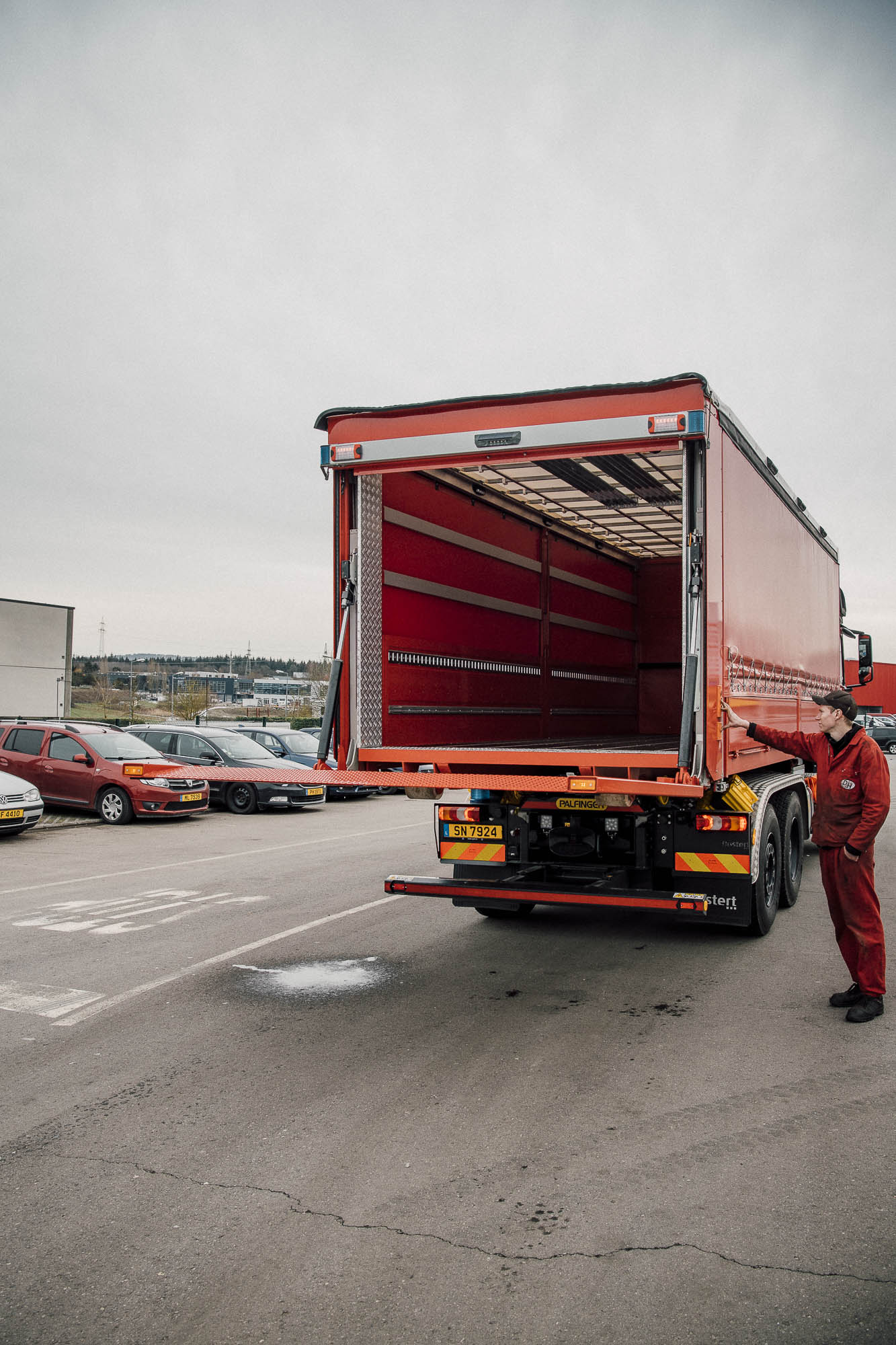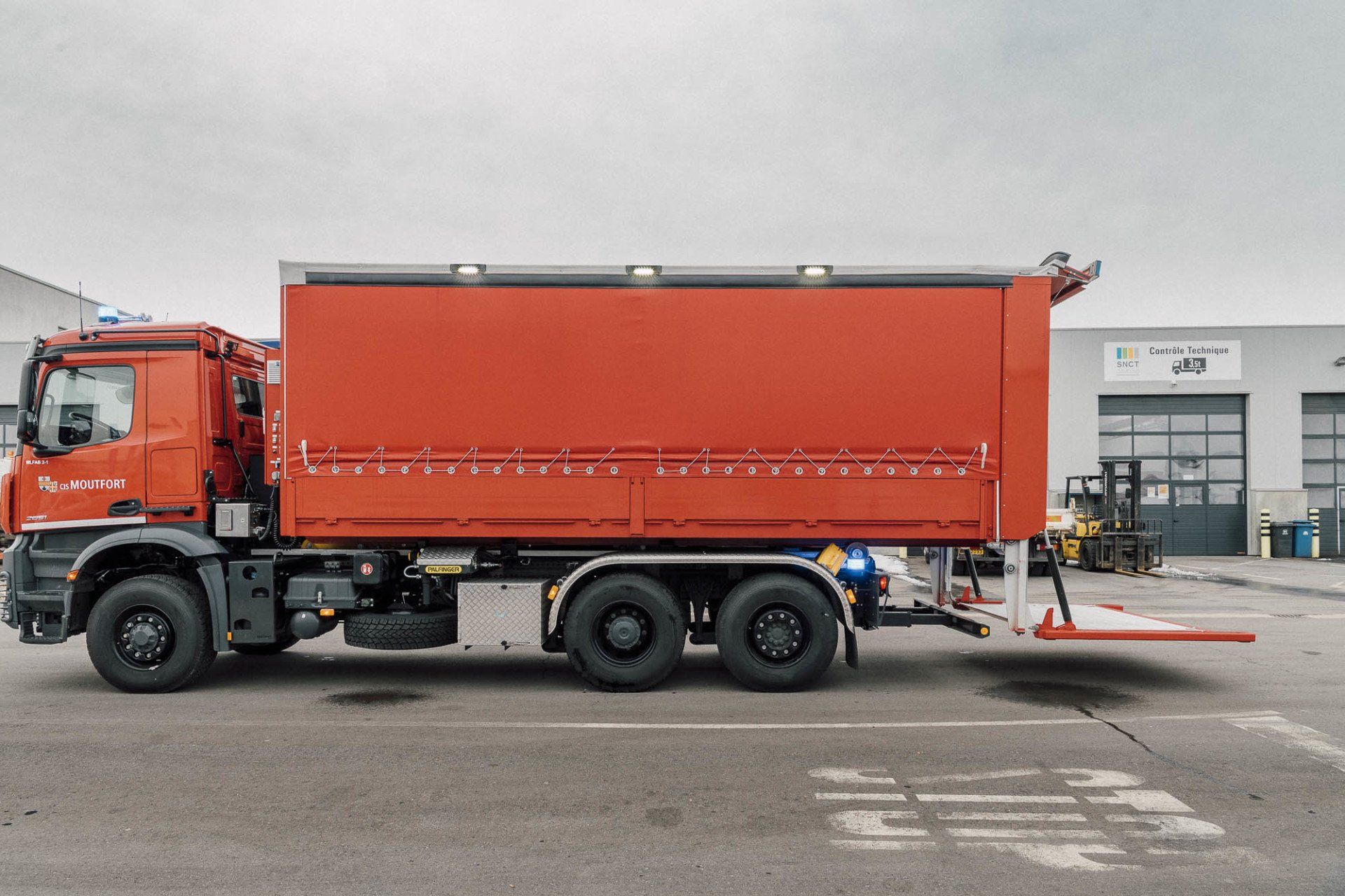 Container von unserem Lieferanten REALMET,mit Vertiakllift und Umfeldbeleuchtung und Innenbeleuchtung. Steuerung vom Vertikallift über Fusstaster und Aussensteuerung. Sperrbalken zur Sicherung der Rollcontainer.