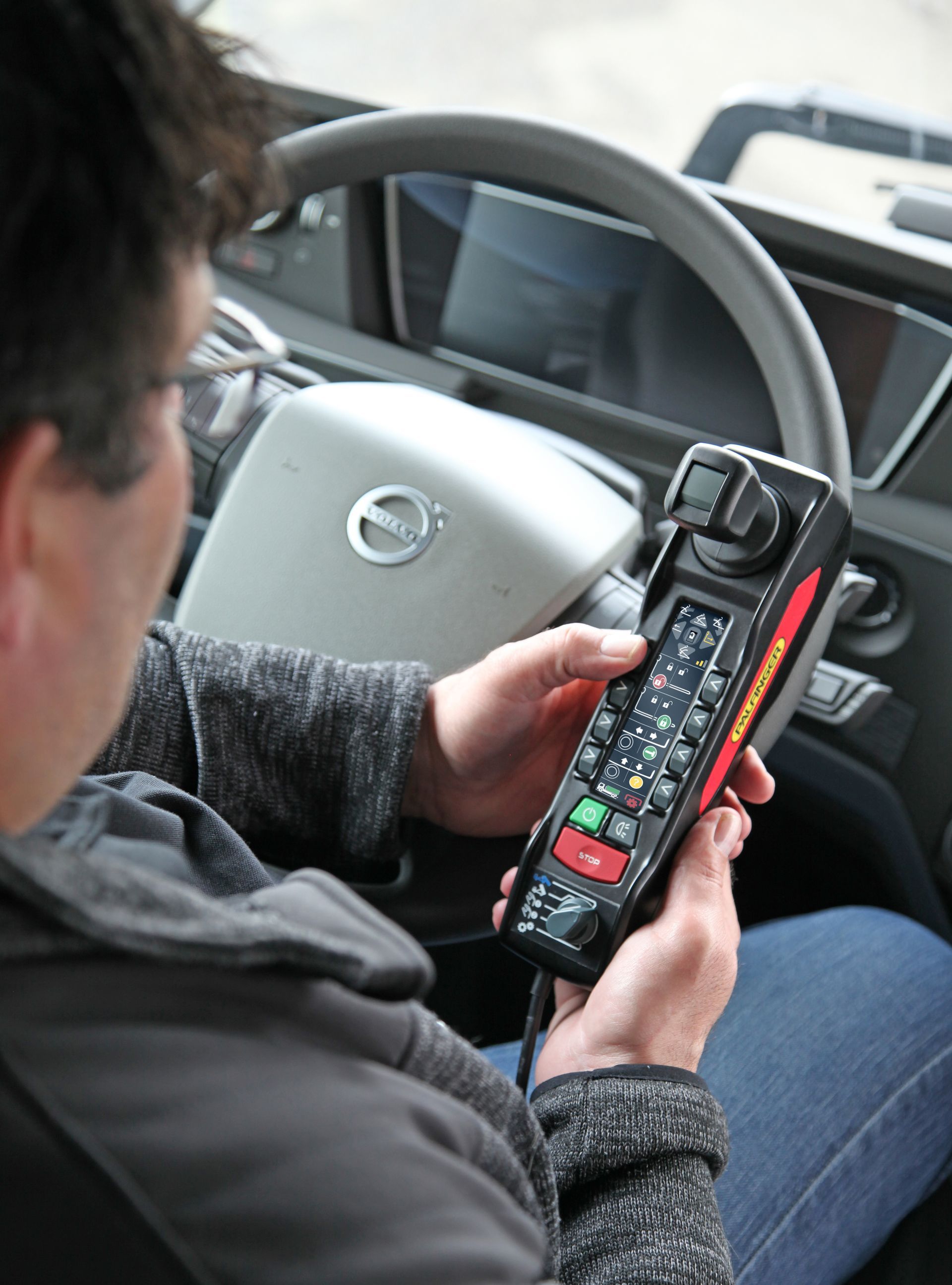 Ein besonderes Highlight der TEC-Serie sie die neue V Drive-Cockpitsteuerung Das vielseitige Display stellt dem Bediener übersichtliche und relevante Informationen über die Funktionen und den Systemstatus zur Verfügung. Dank des ergonomischen Designs des V Drive ist eine intuitive Bedienung aus dem Fahrerhaus heraus möglich, was einen erheblichen Mehrwert im täglichen Einsatz bietet.