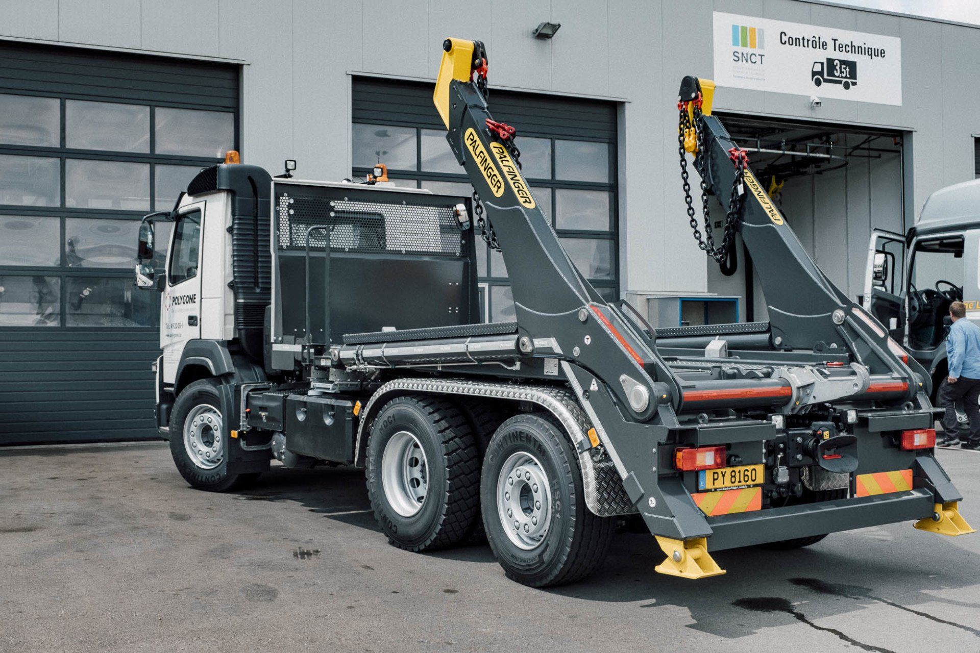 mit Funkfernsteuerung, montiert auf einem 3-achs Volvo FMX Fahrgestell